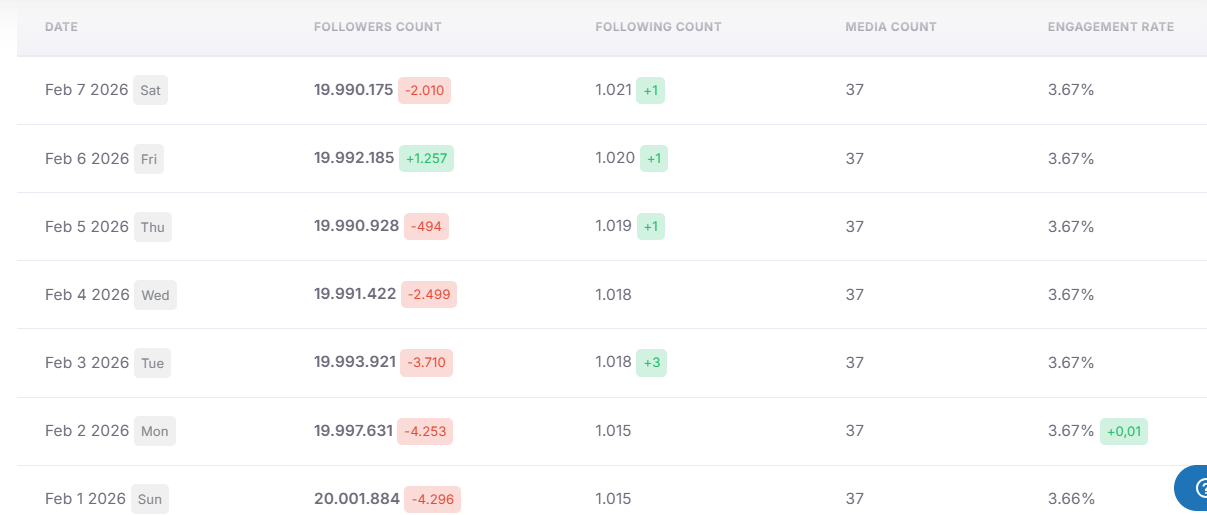 First time happening since VSFS; at the day of VS Argentina event the number of her daily followers surpassed daily unfollows on Insta.