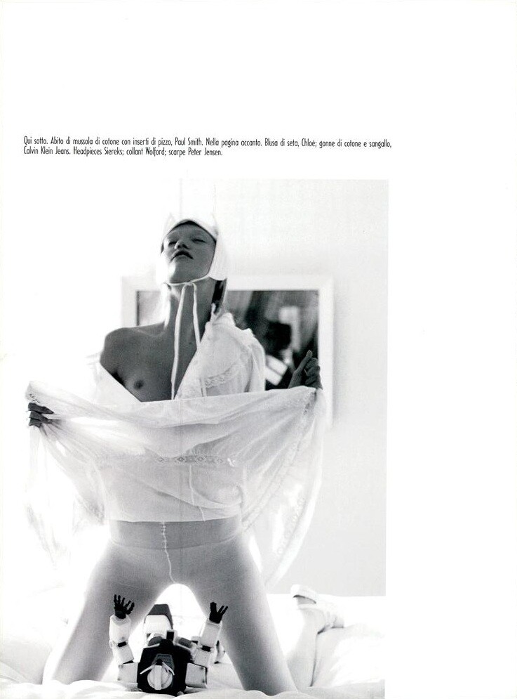 Vogue Italy #667 March 2006 ''Organized Robots'' Photographer: Steven Meisel Stylist: Edward Enninful Set Design: Jack Flanagan Models: Heather Bratton, Élise Crombez, Amanda Moore, Sasha Pivovarova, Missy Rayder, Coco Rocha & Gemma Ward Make-Up: Pat McGrath Hair: Guido Source: Vogue Italia Archive warning: nudity in spoiler Part I
