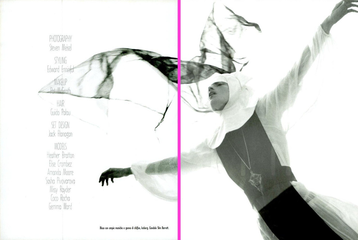 Vogue Italy #667 March 2006 ''Organized Robots'' Photographer: Steven Meisel Stylist: Edward Enninful Set Design: Jack Flanagan Models: Heather Bratton, Élise Crombez, Amanda Moore, Sasha Pivovarova, Missy Rayder, Coco Rocha & Gemma Ward Make-Up: Pat McGrath Hair: Guido Source: Vogue Italia Archive warning: nudity topless Part I