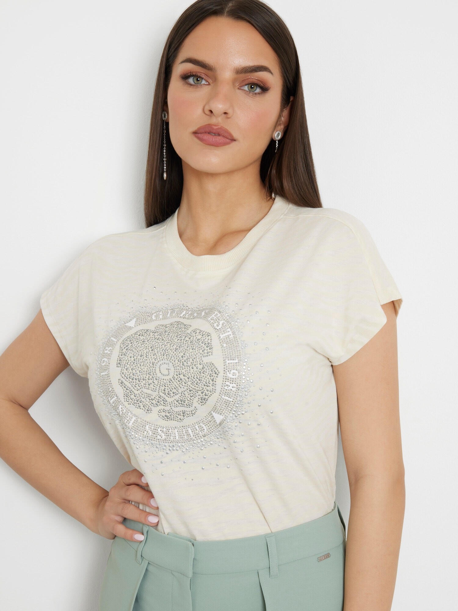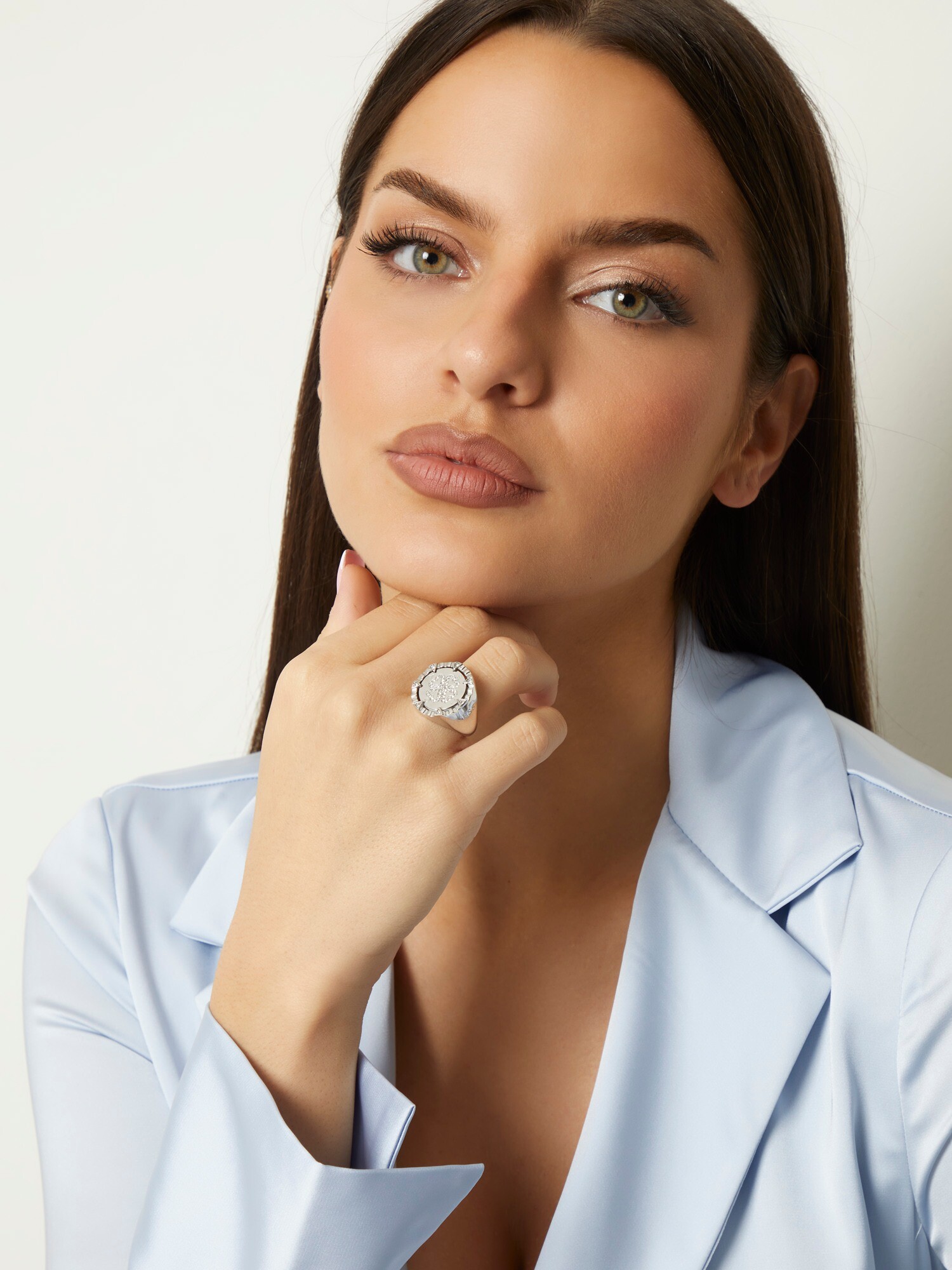 Another studio video: DariiaZ - W3BL83L0O00-JTMU.mp4 I had found a few images with the models' faces cropped out in the Guess accessories section. Initially I assumed the subject of the one below was Krystyna Pyszkova, but after closely inspecting the ears I realized it must be Dariia; the Bachelorette's outer ear helix is somewhat irregular (it's such a tiny flaw that I would never have noticed it if I wasn't forced to identify a faceless photo). It reminds me of the comments section of an old Czech article about Justyna Zednikova, where some petty individuals were savagely vilifying her for having a slightly imperfect nose. Other jewelry pics for comparison (the large 'botanical' is arresting, but I assume would be uncomfortable to wear for an extended period of time):- Olivia Sang