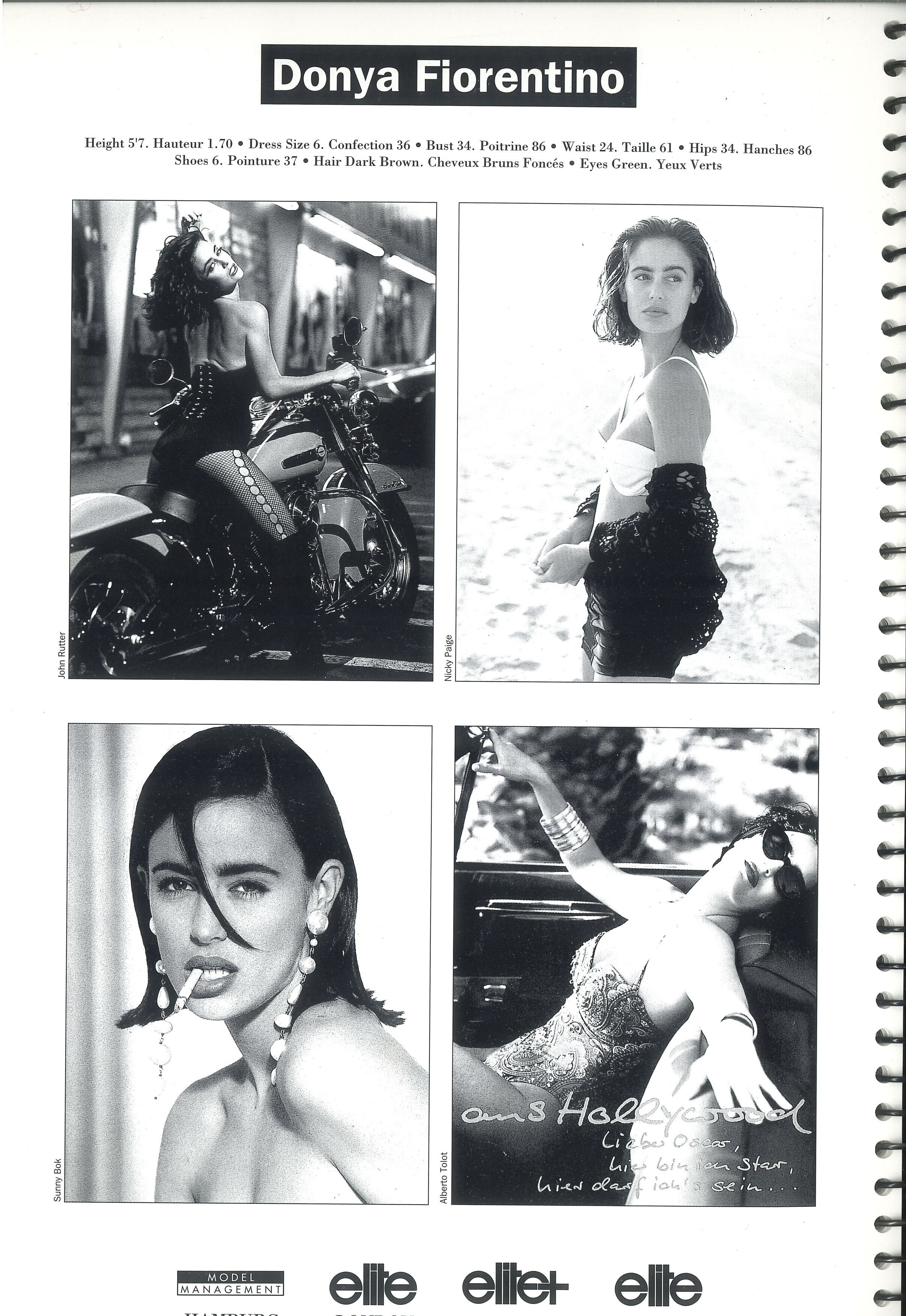 Donya Fiorentino Donya Fiorentino, born on November 10, 1967, in Key Largo, Florida, USA, is a former model (approx. mid 1980s / early 1990s) and photographer. She is best known for her marriages to prominent filmmakers David Fincher and Gary Oldman. (source: mirror.co.uk) Career and Life: Fiorentino worked as a model and photographer. She was married to director David Fincher (the exact dates are not publicly known, but their daughter, Phelix Fincher, is from this relationship). From 1997 to 2001, she was married to British actor Gary Oldman. They have two sons, Gulliver Flynn Oldman and Charlie John Oldman. Agencies: -Elite Paris -Elite Milan -Elite London -Model Management Hamburg Composite Elite Europe 1991: (my scan) (source: instagram) Newsworld Sunday May.25, 1986: (source: crazyaboutmagazines.com) Donya and her 1986 boyfriend Andrew Ridgeley (of Wham!) (source: gettyimages, bridgeman, ims) Best magazine UK 1989: (discovered and posted by @Dayrell and IDed by @RocketQueen ) www.instagram.com/donyafiorentino