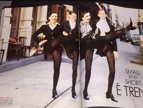 Vogue Italy January 1994 "Small and Short: E Trend'' Photographer: Arthur Elgort Models Frances Torres, Avalon Hodges, Sibyl Buck, Michael McCraine,Katy Richardson, utm