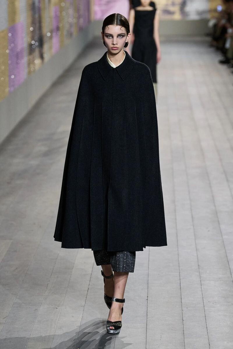 Helsa: The Hourglass Coat in brushed melton wool— defined by its architectural square neckline, sharp shoulders and curved silhouette. Styled with the Poet Blouse, adding a soft counterpoint.