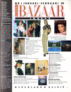 contents + "Het mooie luxe leven" - Harper´s BAZAAR Harper´s BAZAAR Netherlands & Belgium January/February 1989 by Jan Francis - also showing Stephanie Seymour, Karen Alexander, Marie Sara, Will van Kralingen, Miranda van Kralingen, unknown
