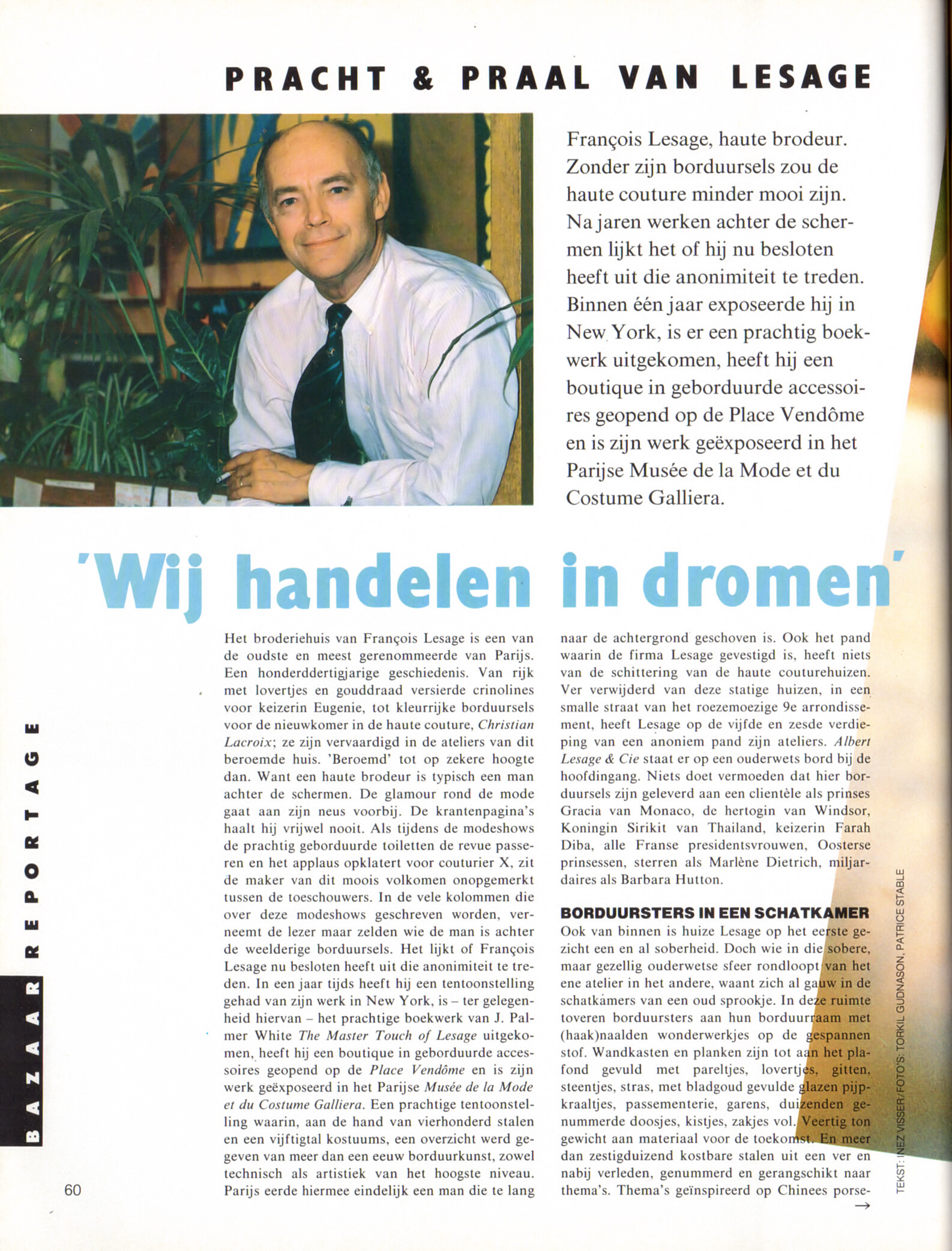 "PRACHT & PRAAL VAN LESAGE Wij handelen in dromen" - Harper´s BAZAAR Harper´s BAZAAR Netherlands & Belgium January/February 1989 by Torkil Gudnason, Patrice Stable
