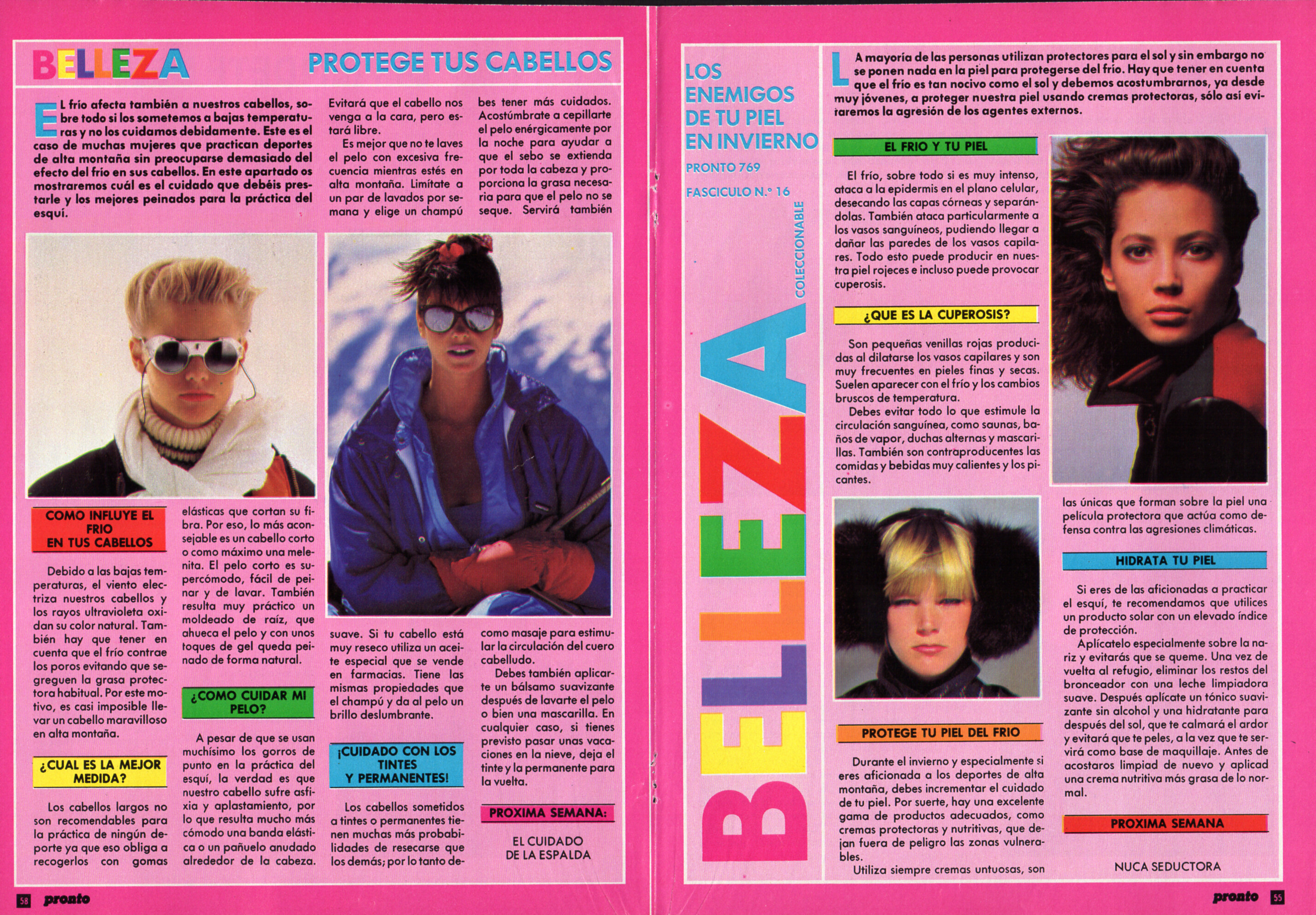 "BELLEZA LOS ENEMIGOS DE TU PIEL EN INVIERNO" + "DEFIENDETE DEL FRIO" + "PROTEGE TUS CABELLOS" - pronto Spain 31. January 1987 #769 I can ID Elle MacPherson, Christina, Christy Turlington, Cecilia Chancellor, Tiina Laakkonen (between Cecilia and Roberta), Roberta Chirko and Christina again (right top with red scarf).