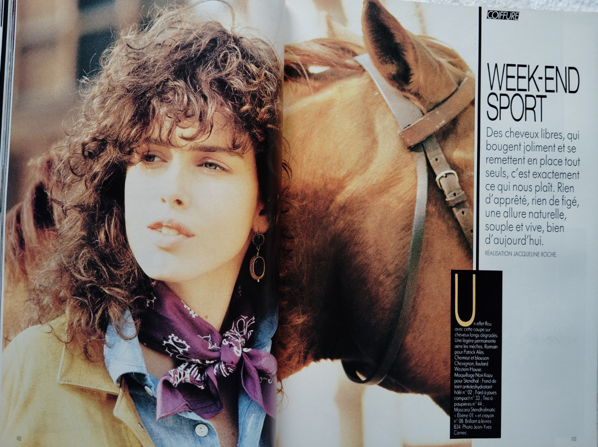 "LE STYLE 86" - VOTRE BEAUTE France February 1986 #594 by Michael Wirth - also showing Honey Labrador, Laurie Lance source: ebay Thanks for the ID to RocketQueen.- Honey Labrador