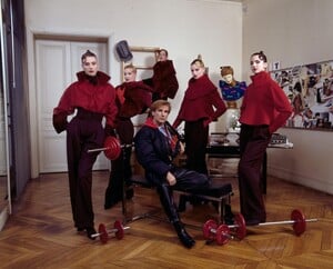 With Claude Montana in his Paris apartment - also showing Christine Bergstrom, Martha Blunk, Natalie Bachmann, Suzanne von Aichinger Photographed by Jean-Claude Deutsch for Paris Match (credited as March 1988)