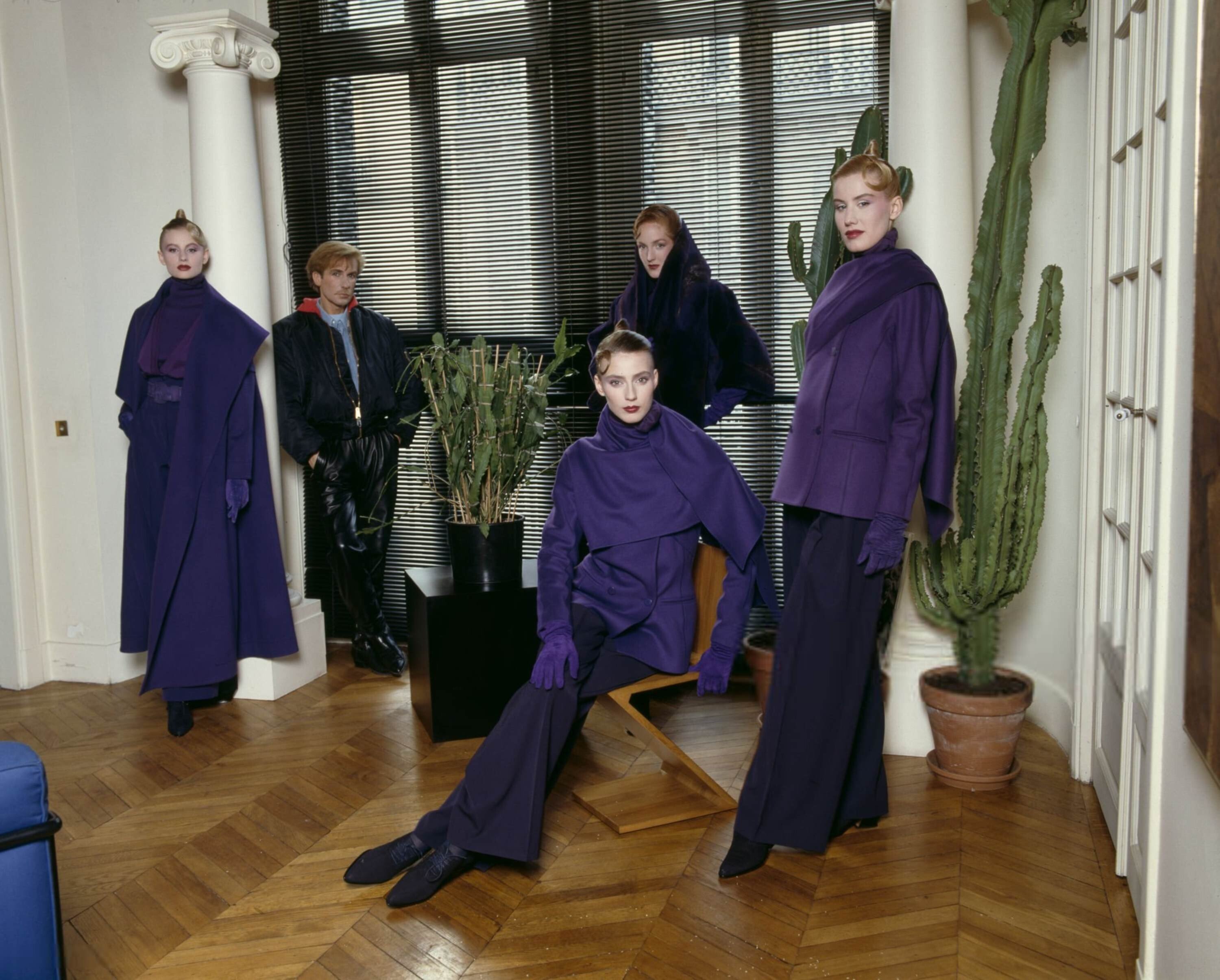 With Claude Montana in his Paris apartment - also showing Madeleine Robinson, Christine Bergstrom, Martha Blunk, Natalie Bachmann Photographed by Jean-Claude Deutsch for Paris Match (credited as March 1988)