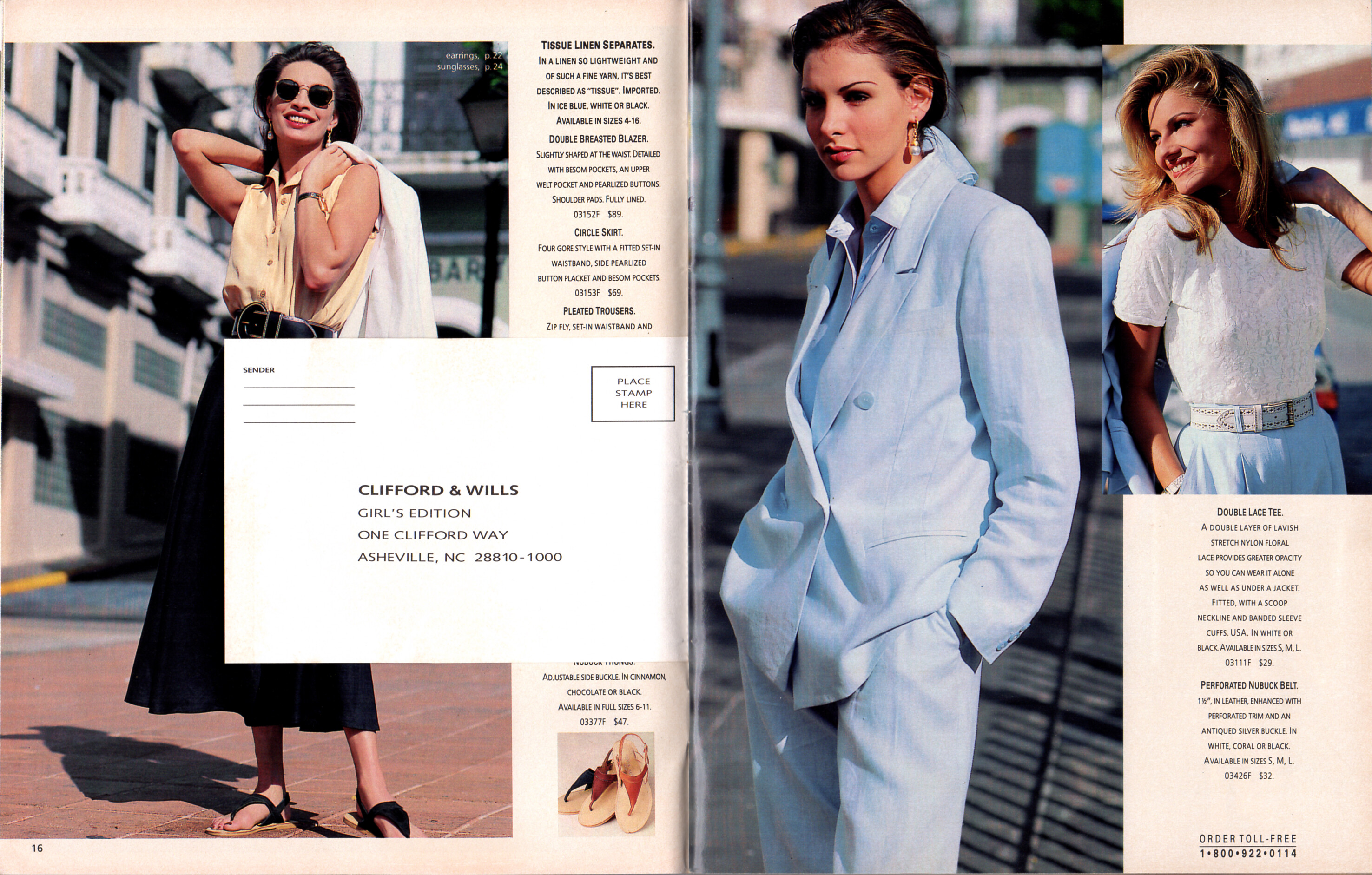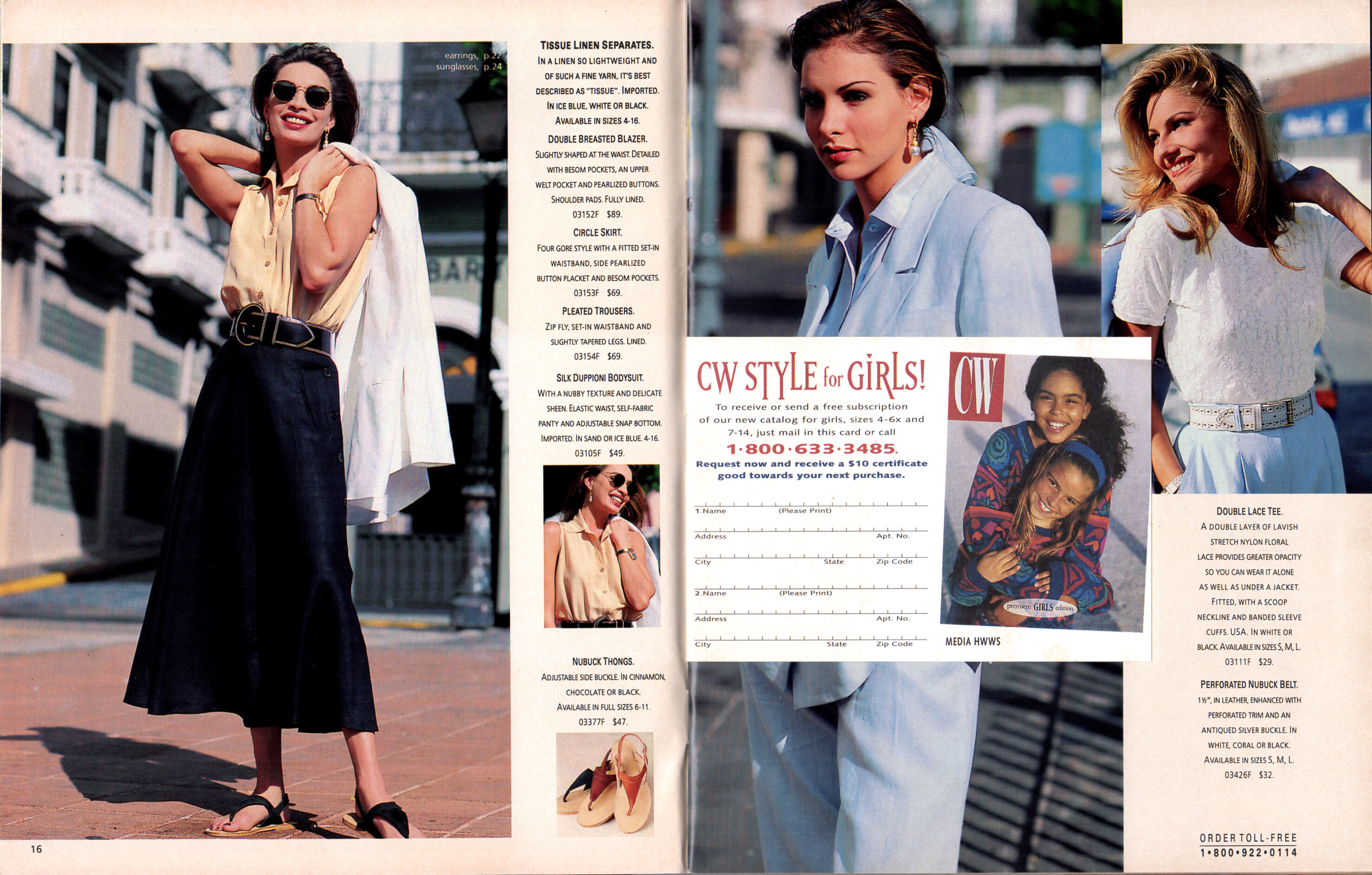 cover + inside CLIFFORD & WILLS Summer 1993 catalog I can ID Gretha Cavazzoni, Suzanne Lanza, Anastasia Trovato, Dana Patrick, Lana Oglivie, Kendra Hite, Renée Simonsen, Rose Boyaz de la Cruz.- Lorianna Sacha Bland