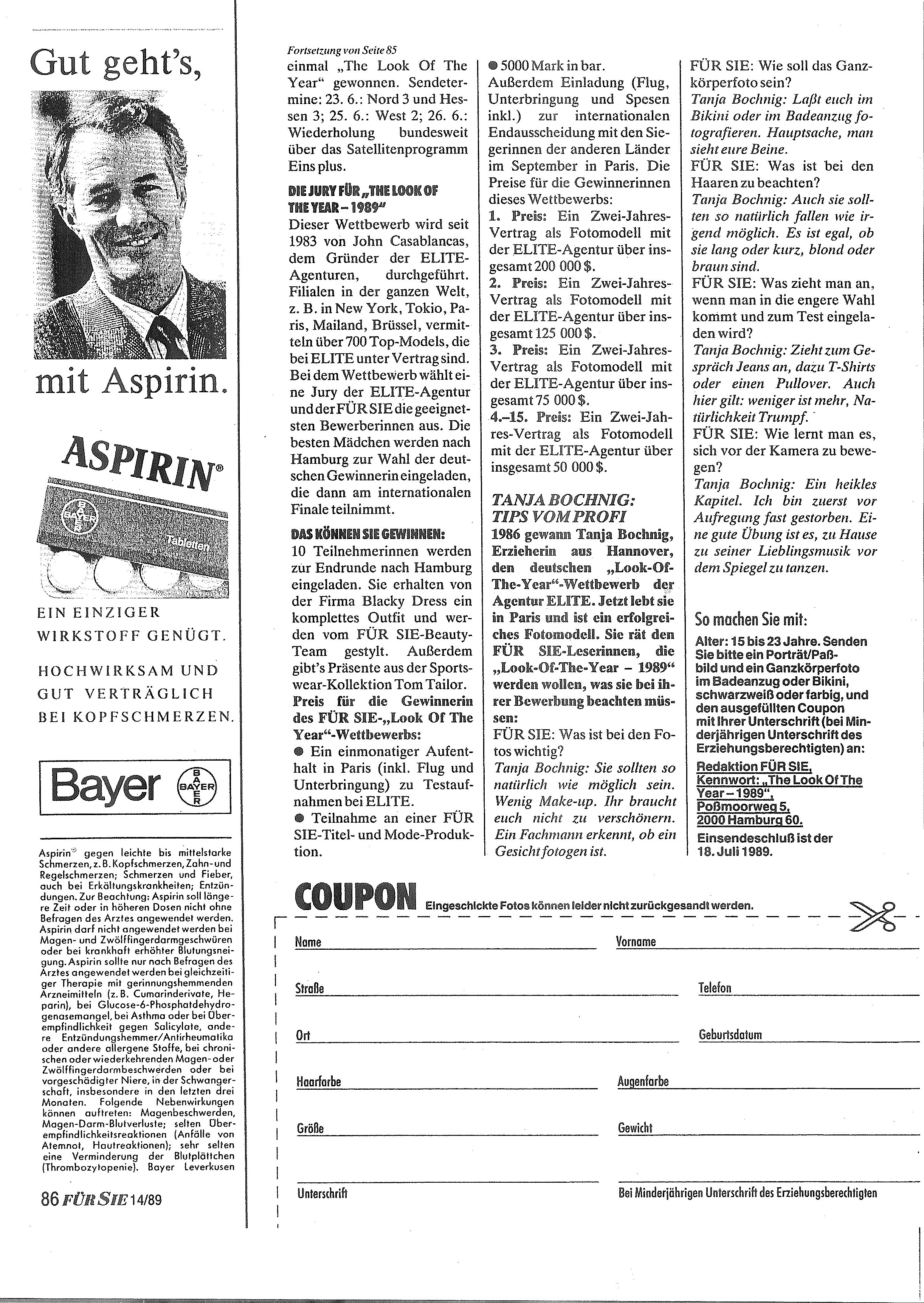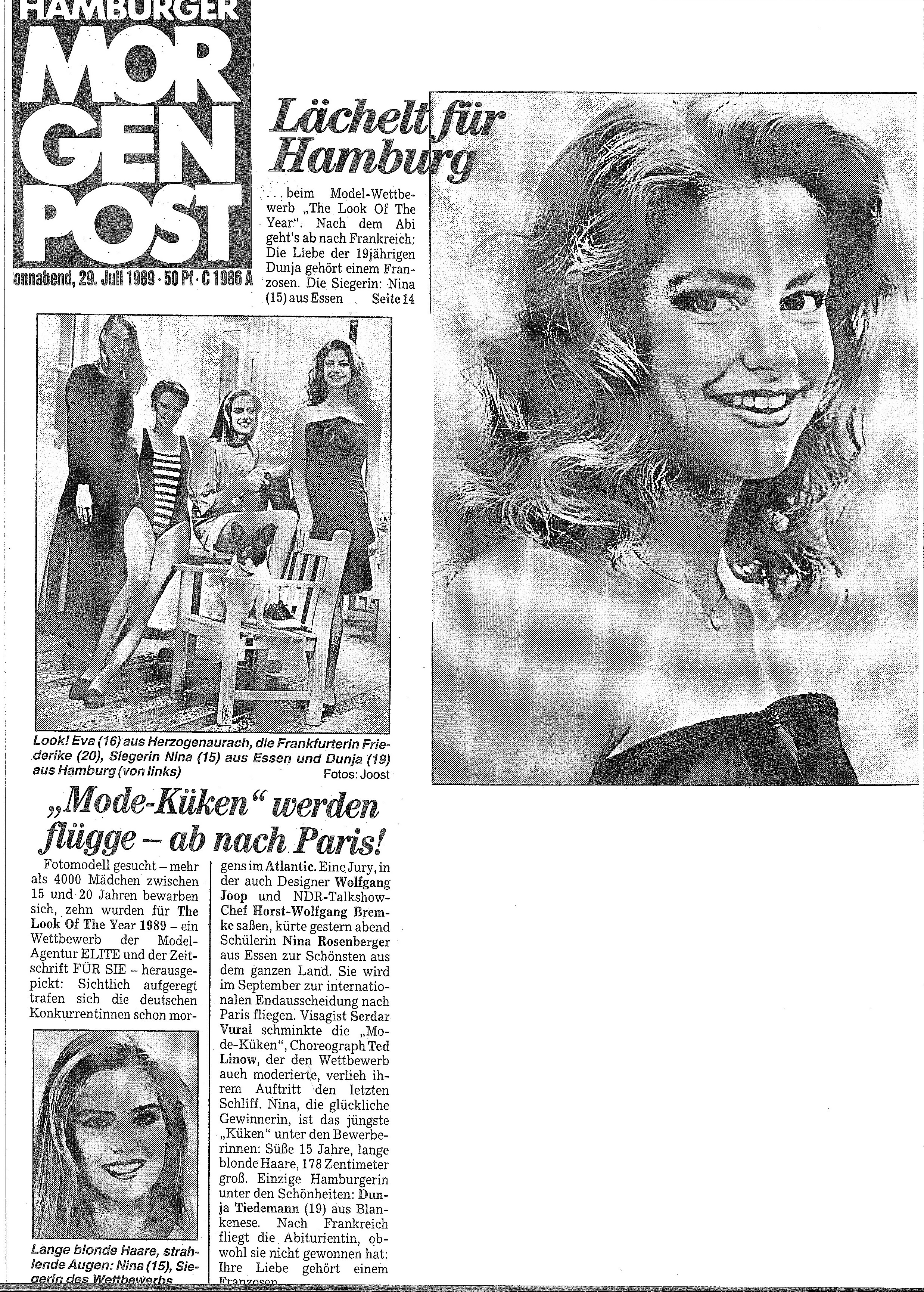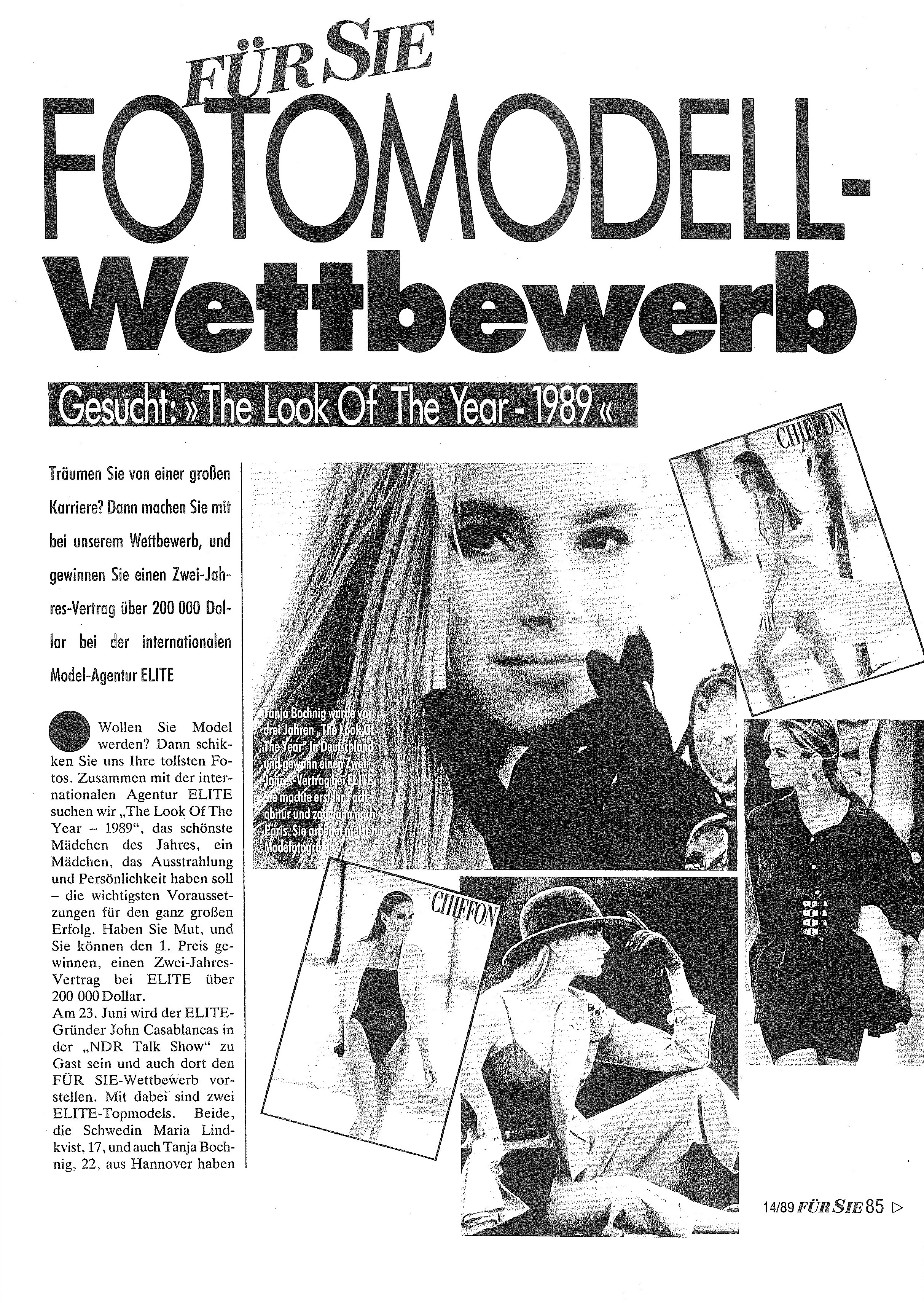 4. LOOK OF THE YEAR / ELITE MODEL LOOK Germany press brochure by FÜR SIE magazine 1989 als showing winner Nina Rosenberger my scans