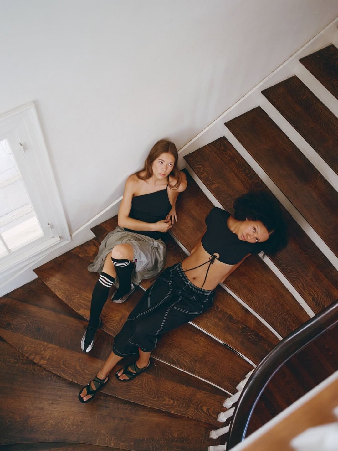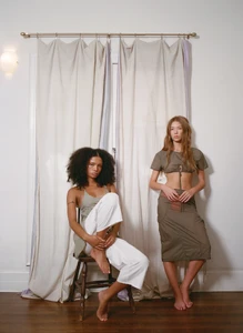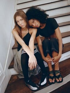 Photo from a yearly magazine BILL 3 (2021), edited and designed by Belgian graphic designer Julie Peeters. Stella with Mathilde and Cecilia Chancellor. I think this is backstage at an Ann Demeulemeester show. leporello-books.com