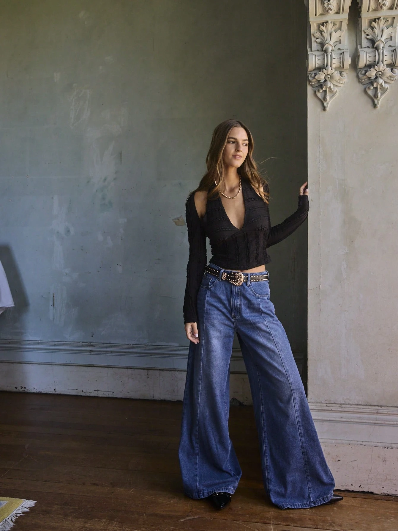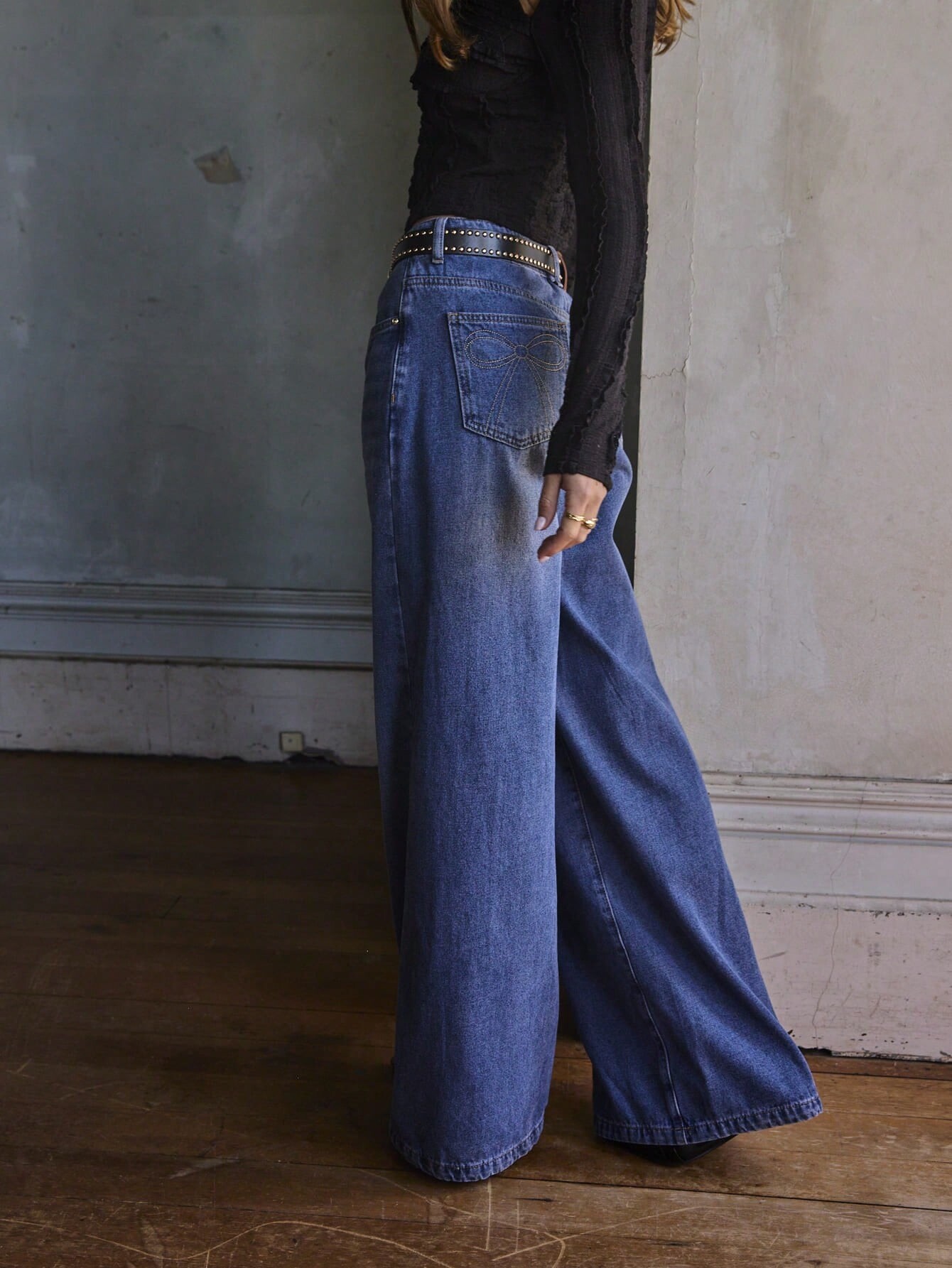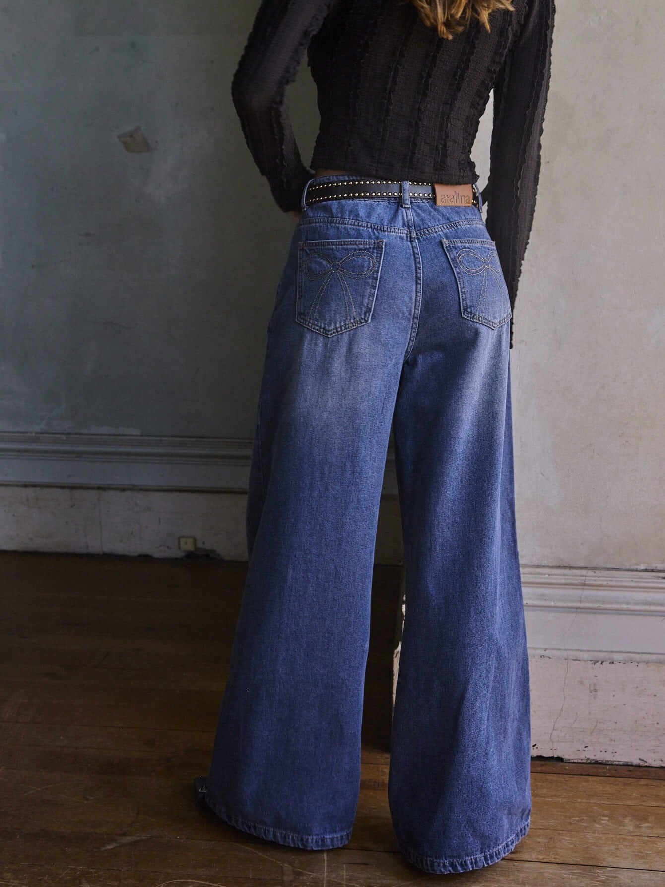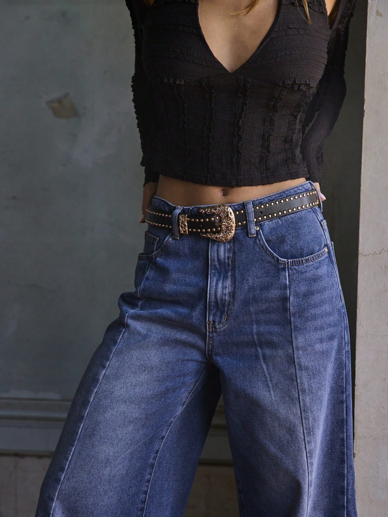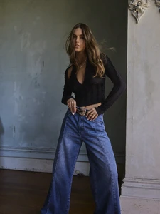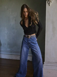 Aralina Vintage High Waist Double Button Wide Leg Washed Denim Jeans Casual Loose Straight Street Style Pants