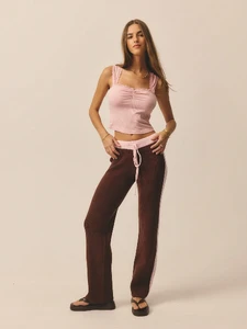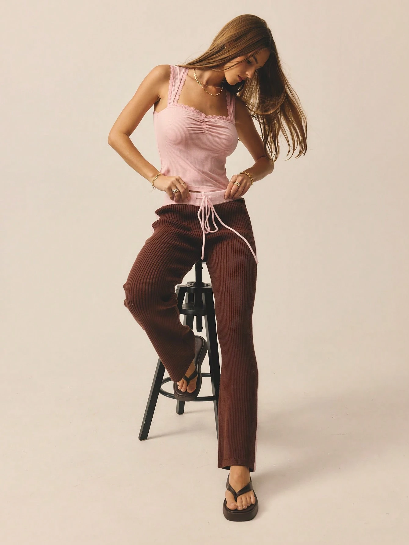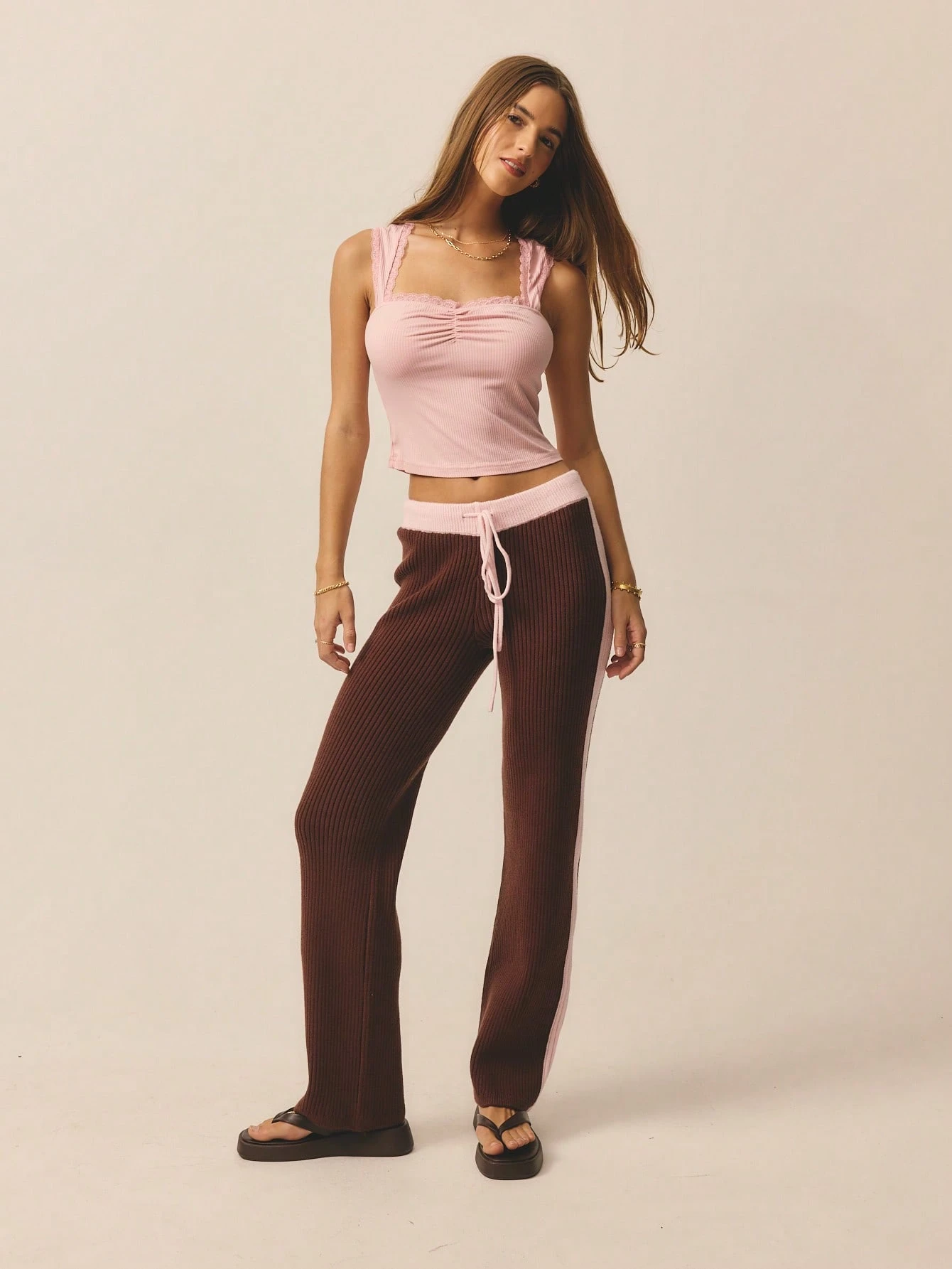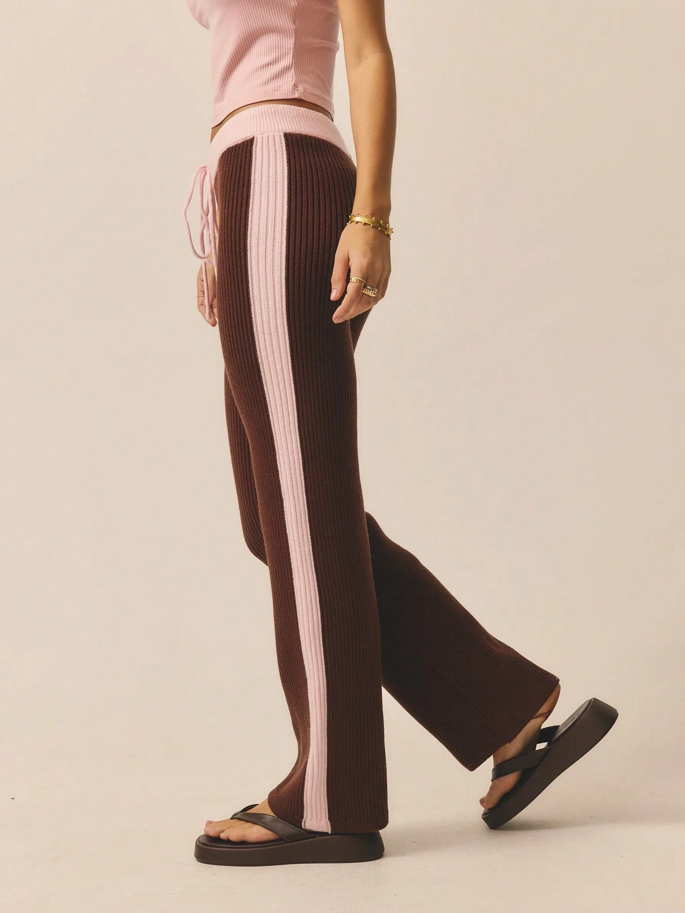 Aralina Women's Leisurewear Knitted Stripe Wide Leg Pant With Contrast Waistband Perfect For Activewear Outfits And Travel Outfits And Vacation Outfits
