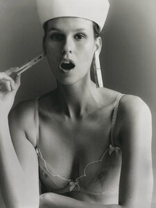 Vogue Italy #667 March 2006 ''Organized Robots'' Photographer: Steven Meisel Stylist: Edward Enninful Set Design: Jack Flanagan Models: Heather Bratton, Élise Crombez, Amanda Moore, Sasha Pivovarova, Missy Rayder, Coco Rocha & Gemma Ward Make-Up: Pat McGrath Hair: Guido Source: Vogue Italia Archive warning: nudity Part I