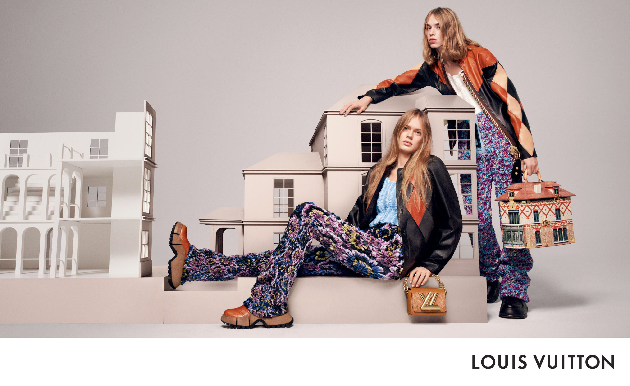 Louis Vuitton Spring/Summer 2023 (Advertisement) with Greta Oberwalleney & Hoyeon Photographer: David Sims Stylist: Marie-Amélie Sauvé Art Director: Edward Quarmby Hair: Duffy Makeup: Diane Kendal Set Designer: Vincent Olivieri freemagazines.top (US Elle March 2023)