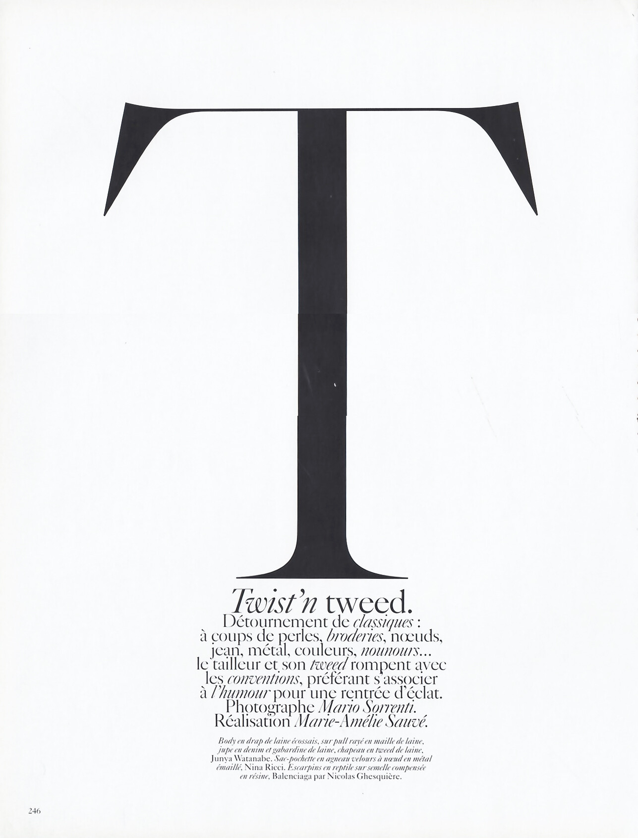Vogue France (Paris) September 2004 "Twist 'n Tweed" Model: Gisele Bündchen Photographer: Mario Sorrenti Stylist: Marie-Amélie Sauvé Hair: Bob Recine Makeup: Aaron de Mey Manicure: Yuna Park Set Designer: Philip Haemmerle stefmodels.com- Eniola Abioro