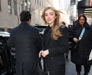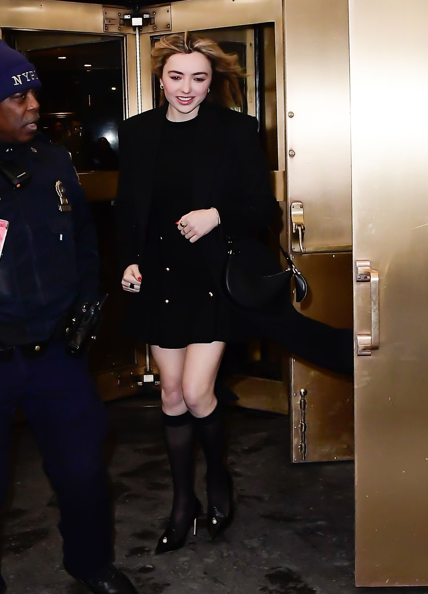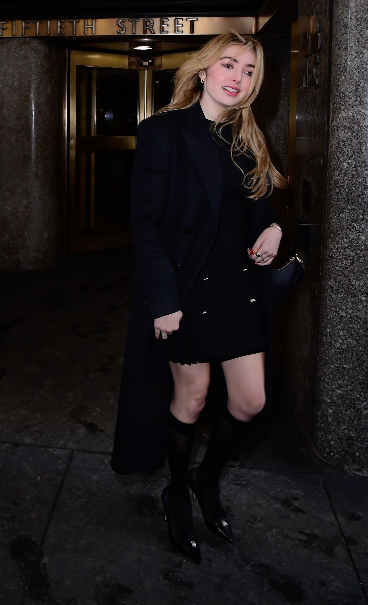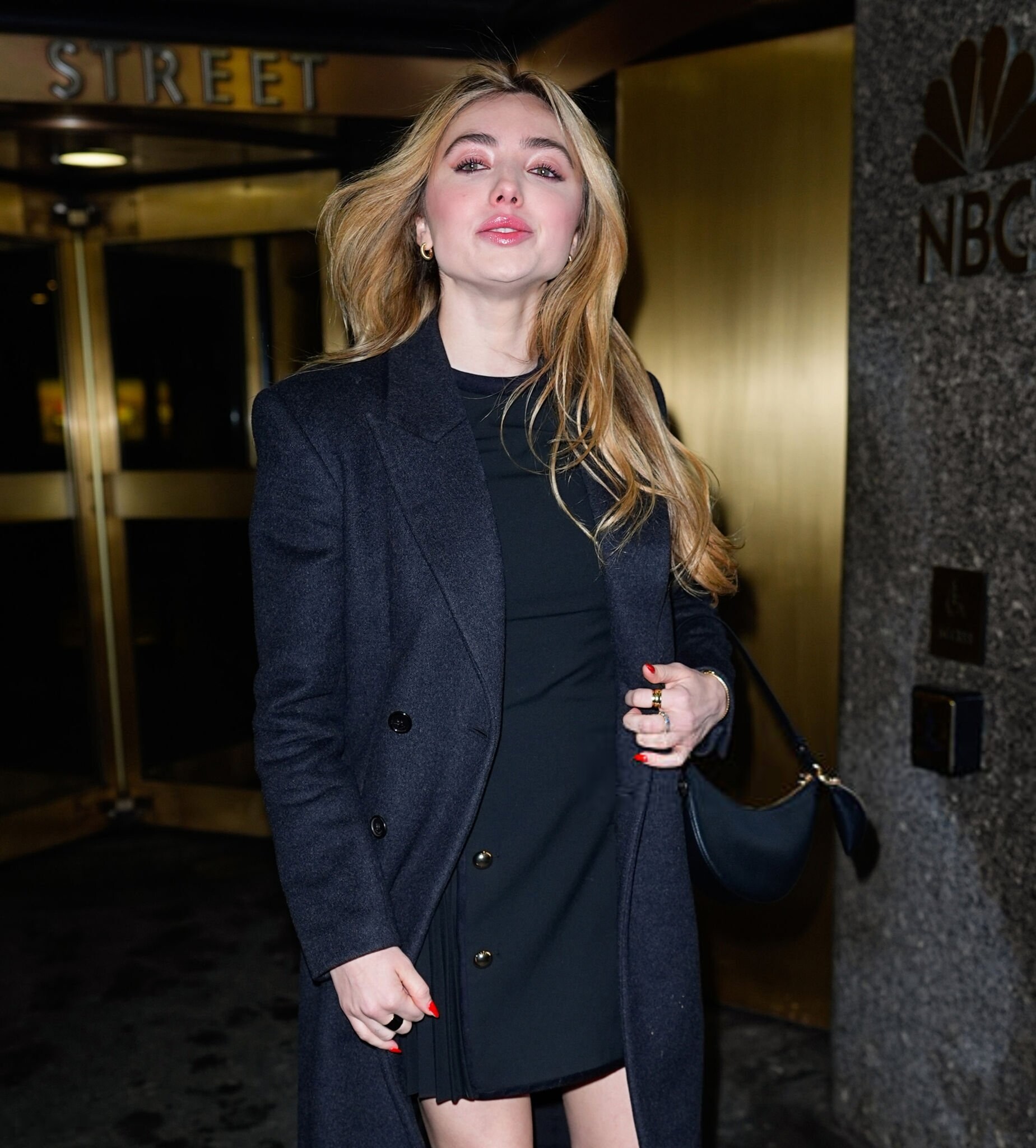 Natalie Portman wore a structured long coat and black heels at The Gallerist premiere during the 2026 Sundance Film Festival in Utah.