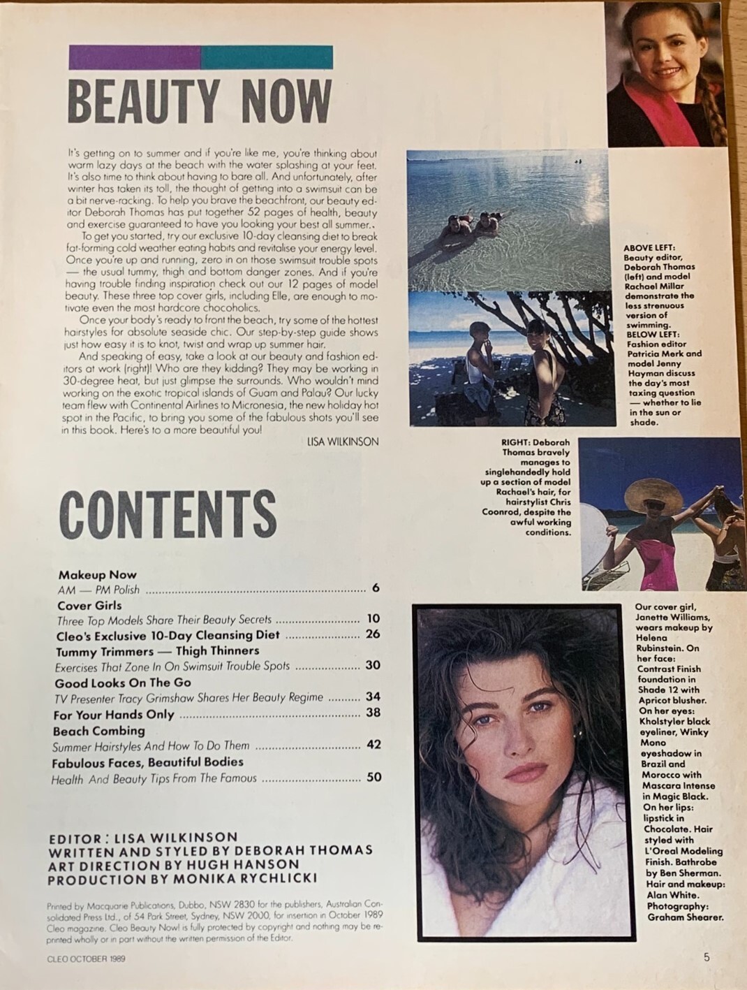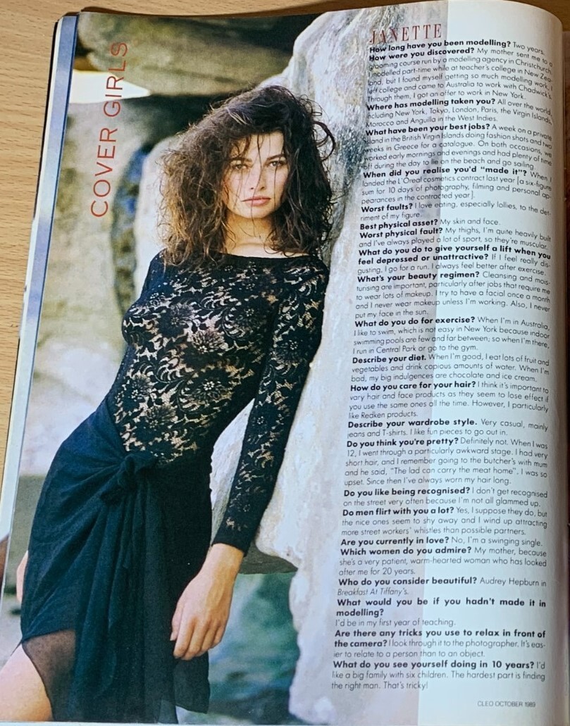 cover + cover-look CLEO BEAUTY Australia October 1990 by Brian Nice - also showing Rachel Hunter, Laurence Vanhaeverbeke, Claudia Schiffer, unknown source: ebay Rachael Millar- Linda Evangelista