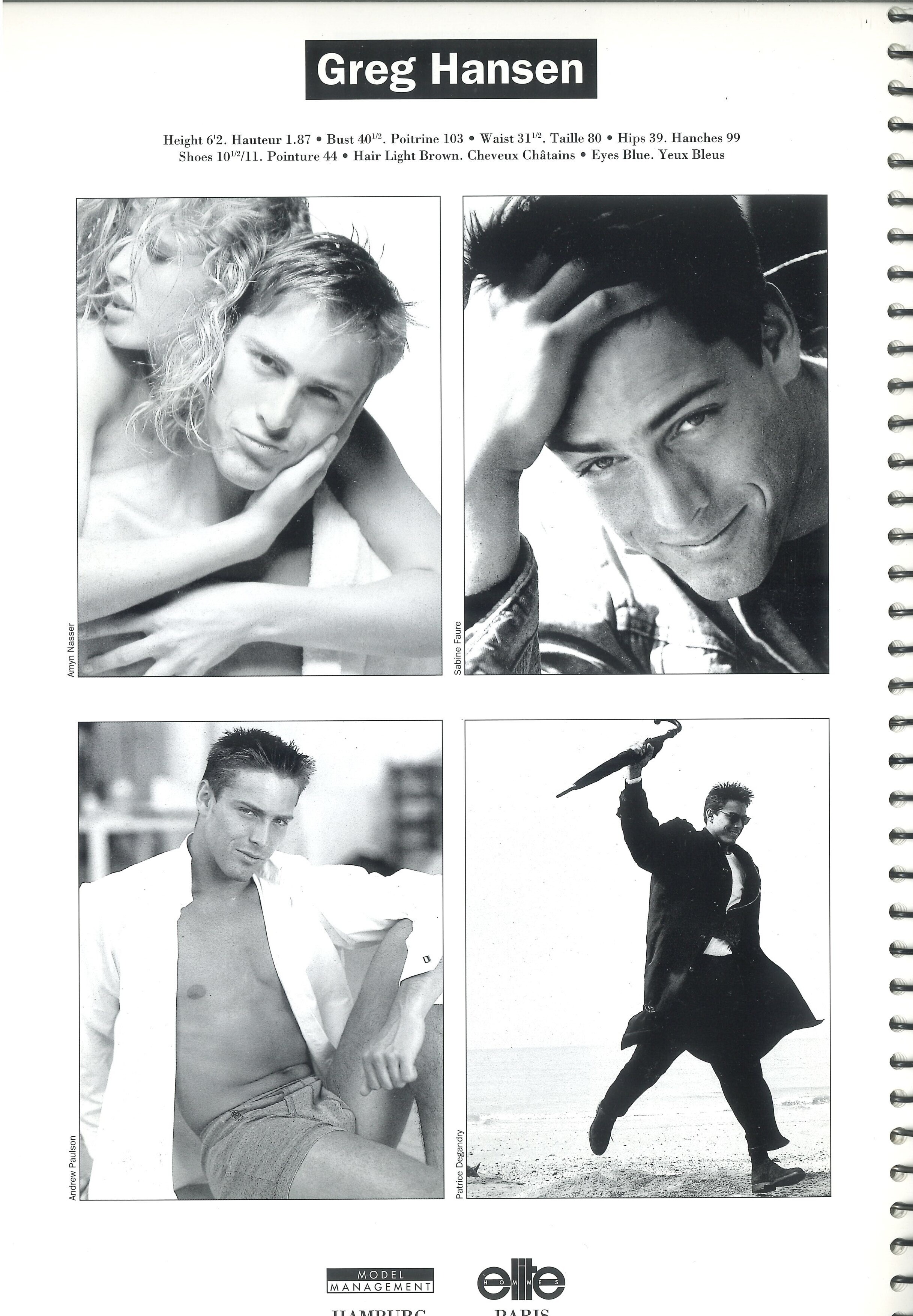 6. GREG HANSEN photo Sabine Faure / goseenews Greg Hansen comes from California and started modeling in San Francisco in the early/mid 1980s. In around 1990 he started to work internationally and in Europe he quickly became one of the male topmodels of the 1990-1995 female supermodel era. Elite Europe agency book 1991 / my scan In the mid 1990s he started out with new projects such as his own modeling school and also as singer. Fashion Models Academy Greg Hansen 1996 / Facebook Discogs Nowadays he seems to work as an event DJ out of NYC Facebook / djgreghansen