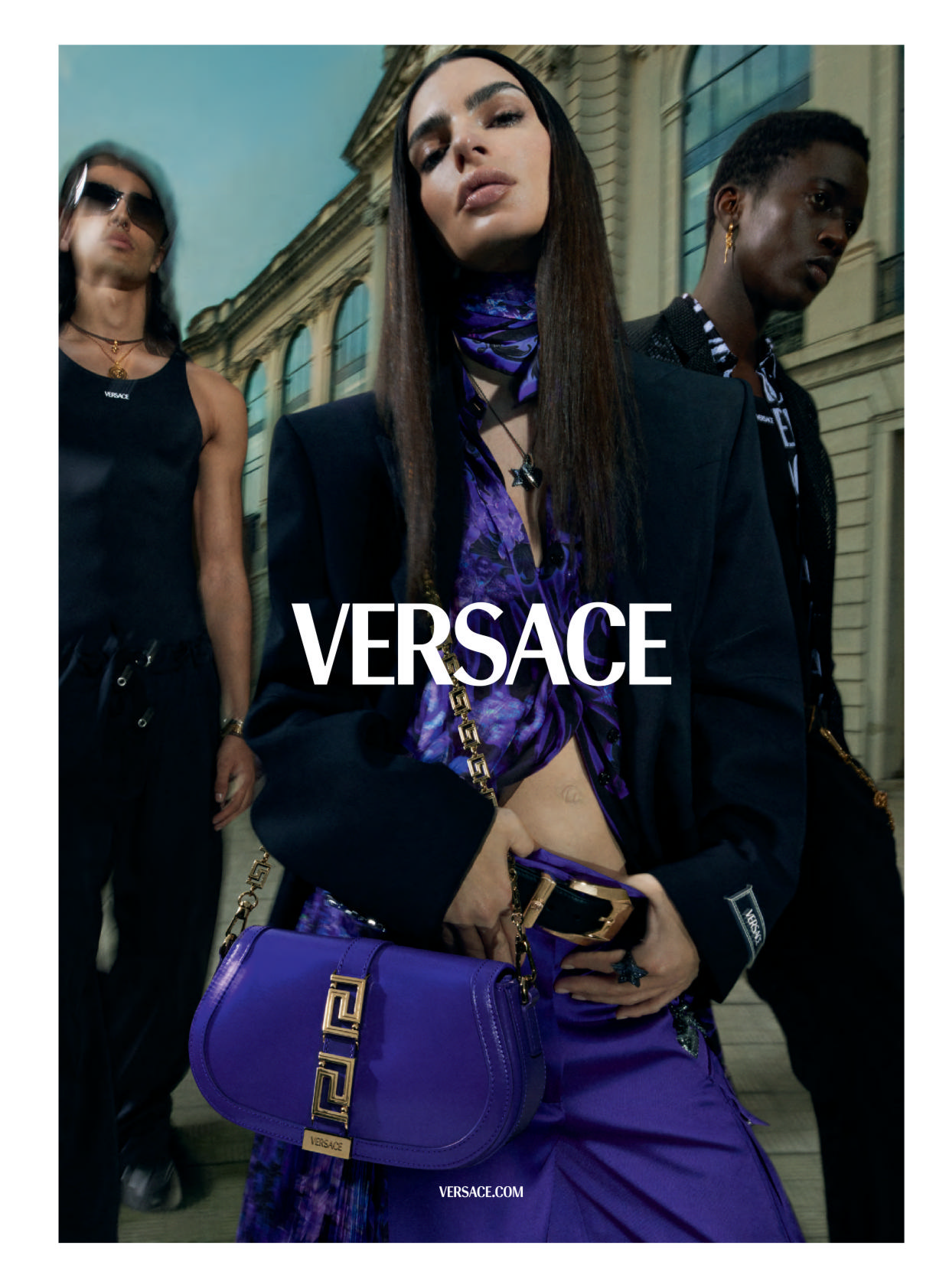 Versace Spring/Summer 2023 (Advertisements) Models: Emily Ratajkowski, Limamu Mbaye & Taino Uppal Photographers: Mert Alas & Marcus Piggott Stylist: Jacob K. Hair: Jawara Wauchope Makeup: Isamaya Ffrench Manicure: Simone Marino ebook3000.com (UK Vogue April 2023)- Ads of the 2020s : Fashion & Accessories