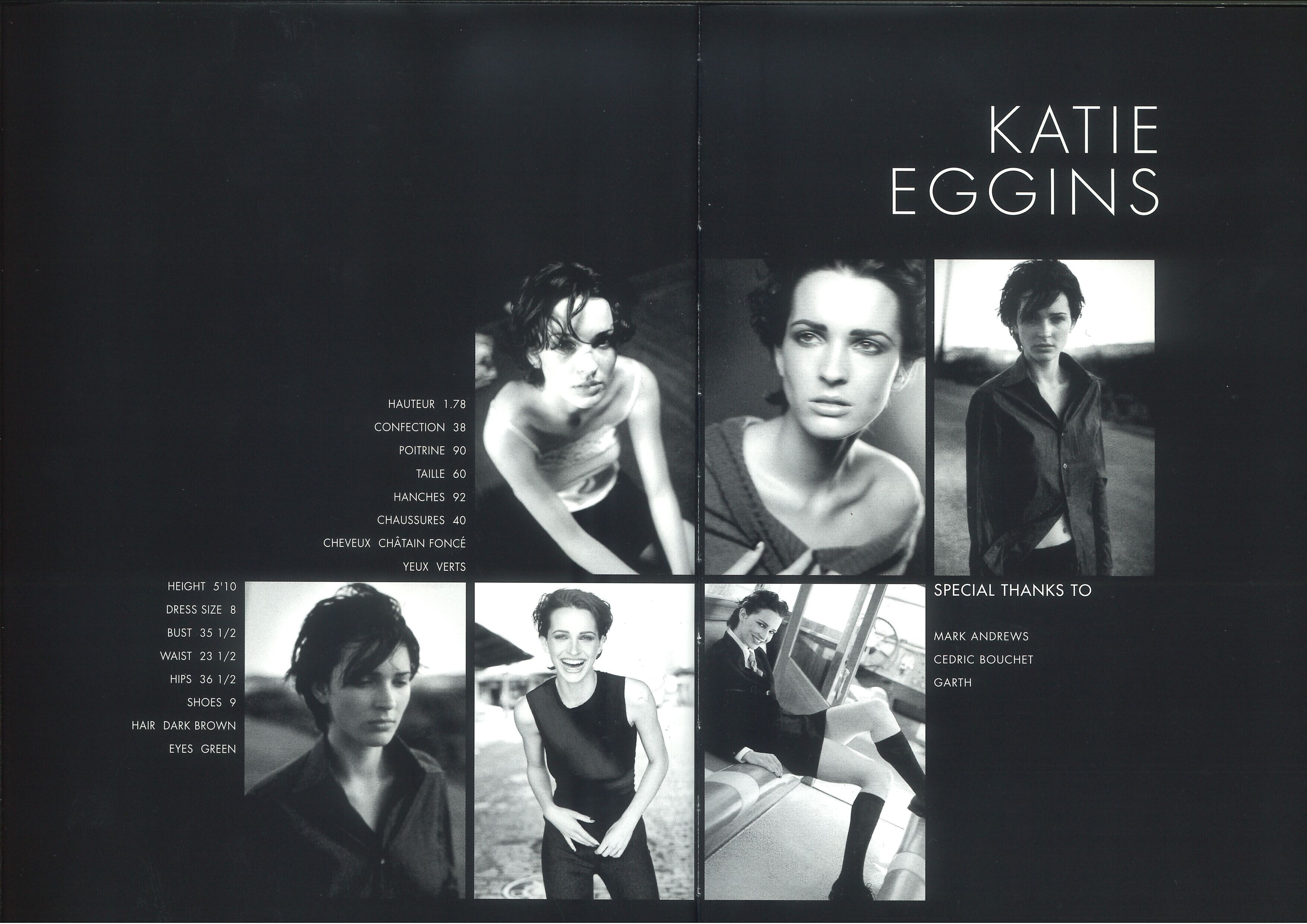 KATIE EGGINS Katie is a former model from the USA that was mostly active during the late 1990s into the early 2000s. She was inside the Elite network. Height: 1,78m / 5‘10 Hair: dark brown Eyes: green Former Agencies: Elite Paris Elite Milan Elite London Model Management Hamburg Munich Models (Elite Europe agency book 1997 - my scans)