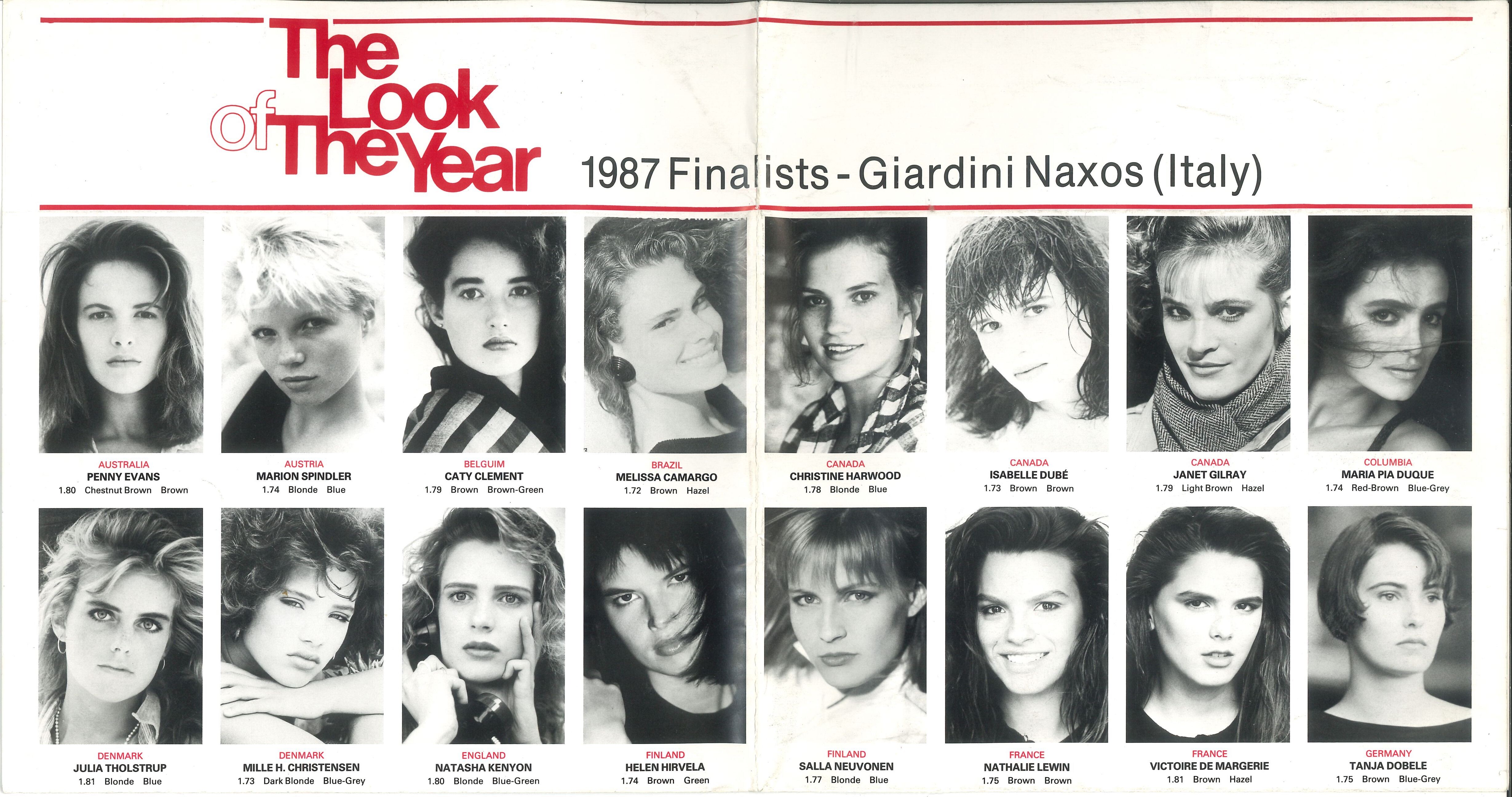LOOK OF THE YEAR contestant headsheet poster international final 1987 Showing: Penny Evans Marion Spindler Caty Clement Melissa Camargo Christine Harwood Isabelle Dube Janet Gilray Maria Pia Duque Julia Tholstrup Mille Holm Christensen Natasha Kenyon Helen Hirvela Salla Neuvonen Nathalie Lewin Victoire de Margerie Tanja Dobele Marjolein Goes Berta Marie Waagfjord Jennifer O'Connell Galit Mozes Yukari Yoshino Emma Ritchie Mona W. Haland Robyn Cullum Laura Amigo Anna Östberg aka Anna Ostberg Eliane Ceschi Alisa Esposito Angelina Whitaker Ashley Thompson Bree Neumann Careen Caldwell Debbie Chin Debra Goodman Donna Peale aks Donna Peele Jacqueline Jager Jennifer Crole Jennifer Shirck Jill Larson Karin Kelts Karinna Karlan Kerri Henderson Kristin Avery Laurie Godet Lucinda Holmer Mellissa Manco Nicole Duncan Nicole Fitzgerald Renee Jeffus Sandriel Frank Susan Hayden Tammi Lee Daliborka Novkovic Susanna Mateljan my scans