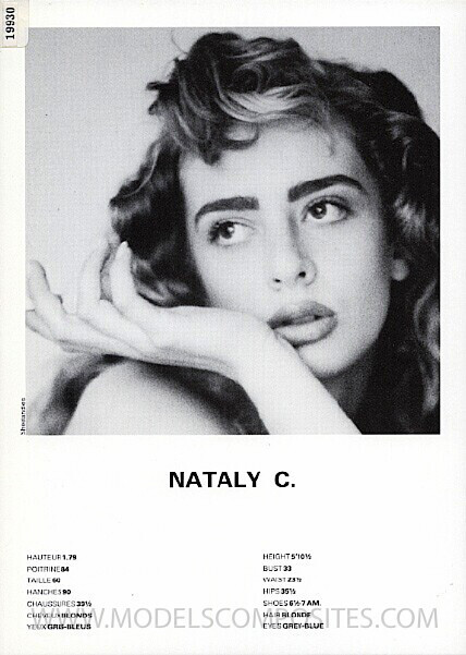 Nataly Charles is an 80s/90s model, represented by City Models, Paris. Height: 1.79 Bust: 84 Waist: 60 Hips: 90 Shoes: 39 Hair: Blonde Eyes: Grey-Blue modelcomposites.com