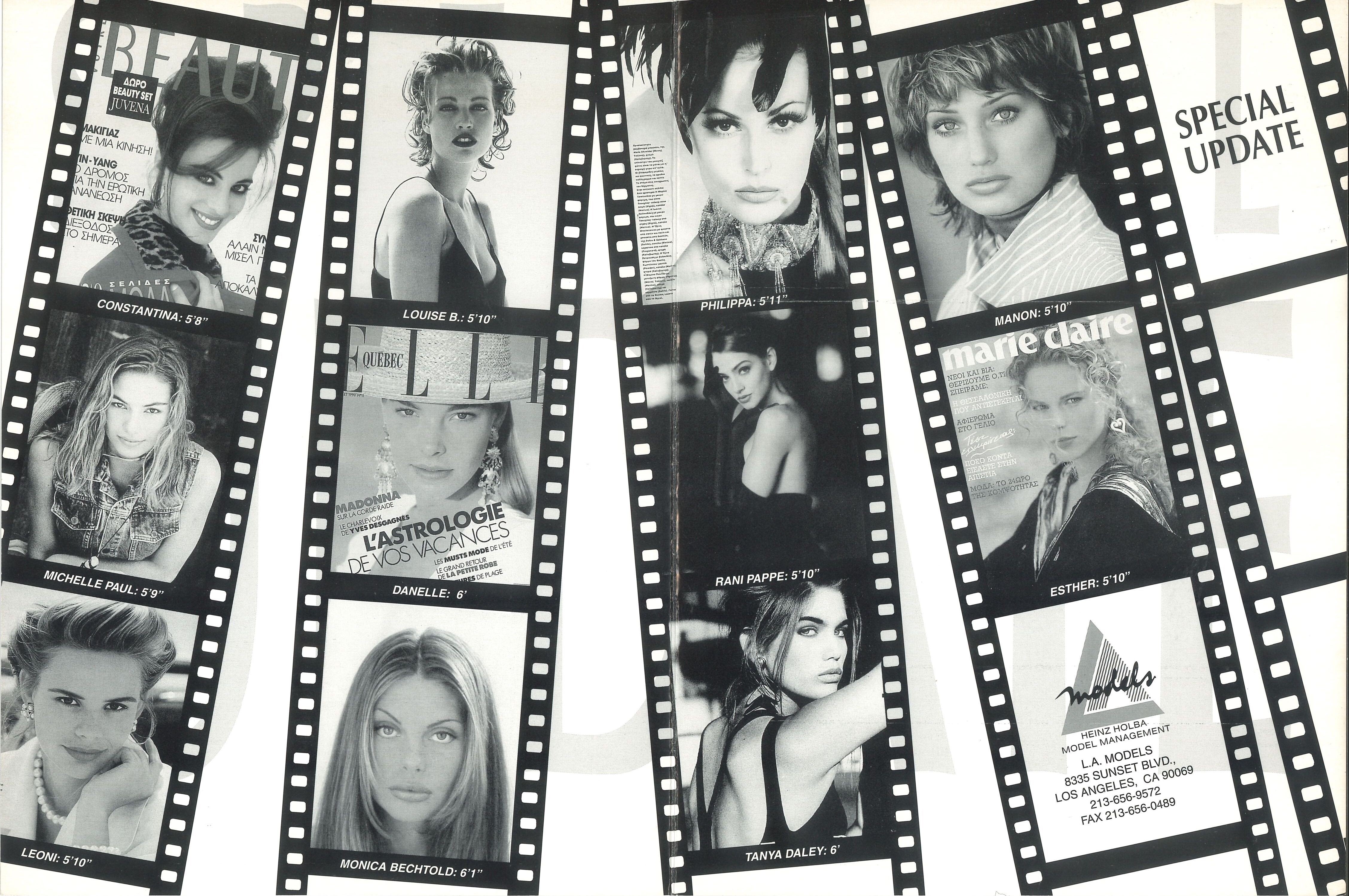 L.A. MODELS 1991 update headsheet posters Mainboard: Constantina Michelle Paul Leoni Louise B. Danelle Scott Monica Bechthold Philippa Matthews Rani Pappe Tanya Dalay Manon von Gerkan Esther Jonker Men: Marcus Schenkenberg Guy Viau Moose Ali Khan John Adams Paul Locatelli Brendan O'Neal New Faces: April Aurora Beathe Cassandra Cassidy Celeste Claritza Emily Jennavave Jessica Julie G. Julie K. Kami Karen Koreen Kristie Lauren Masha Melissa Ponthea Shannon Shayna Shoyah Spirit Stephanie Tennille Tiffany C. Tiffany T. Tonya Windy my scans @RocketQueen @Minerva13 @parisienne @danny-19 @Martial @Dayrell Can you pls help me with the missing last names before I cannot amend the post anymore? Is "Louise B." Louise Birgan?
