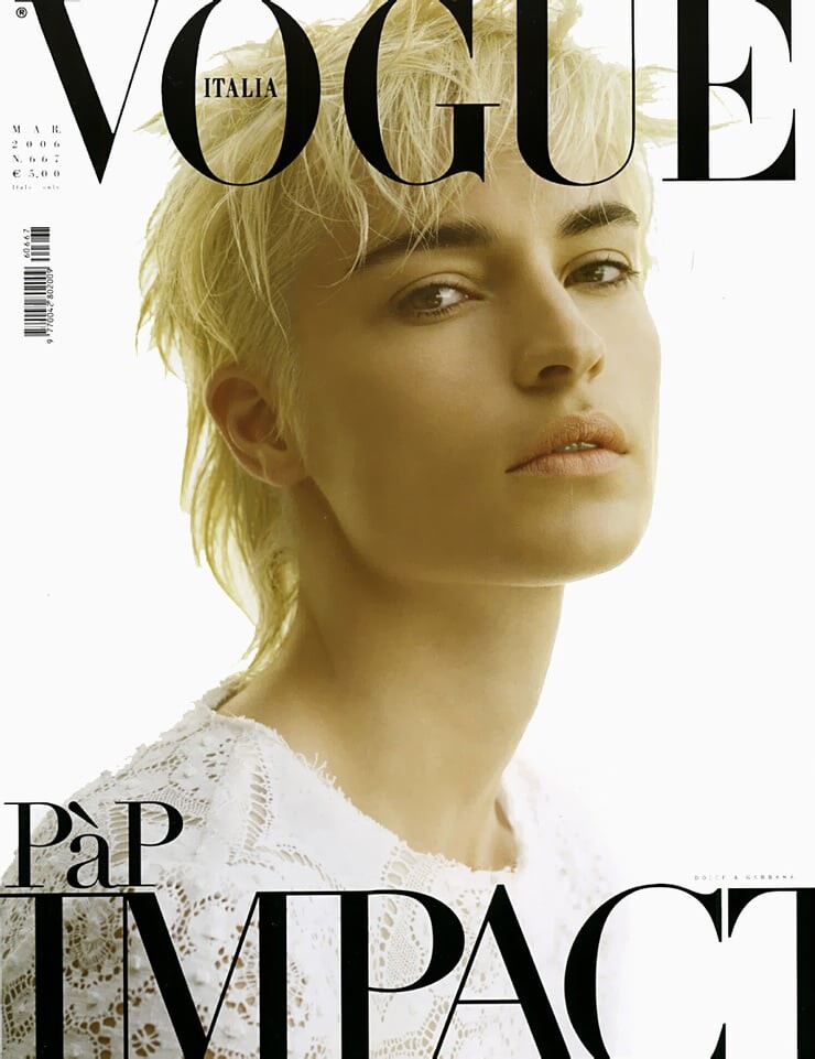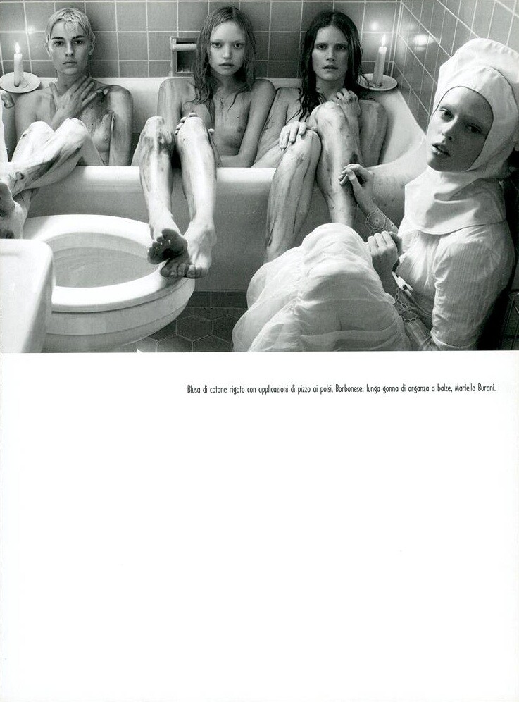Vogue Italy #667 March 2006 ''Organized Robots'' Photographer: Steven Meisel Stylist: Edward Enninful Set Design: Jack Flanagan Models: Heather Bratton, Élise Crombez, Amanda Moore, Sasha Pivovarova, Missy Rayder, Coco Rocha & Gemma Ward Make-Up: Pat McGrath Hair: Guido Source: Vogue Italia Archive Part I warning: nudity topless