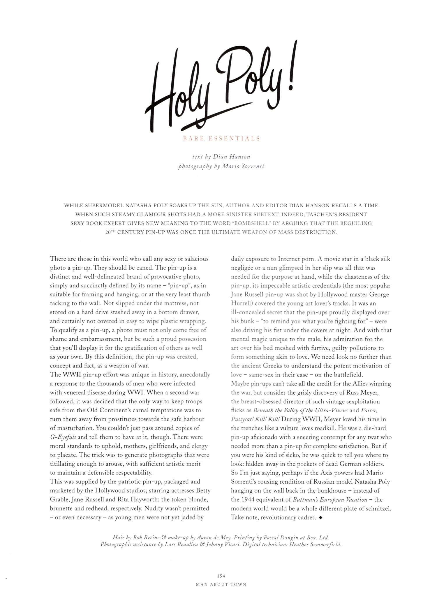 Man About Town Spring/Summer 2010 "Holy Poly" Model: Natasha Poly Photographer: Mario Sorrenti Hair: Bob Recine Makeup: Aaron de Mey WARNING: Nudity Scanned by vogue28 at The Fashion Spot