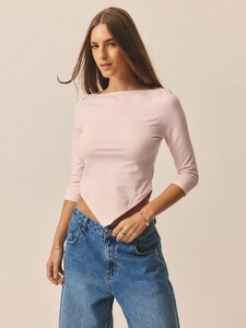 Aralina Women's Casual Chic Elegant Luxury Boat Neck 3/4 Sleeve Asymmetrical Hem Top Perfect For Christmas And New Years Outfits