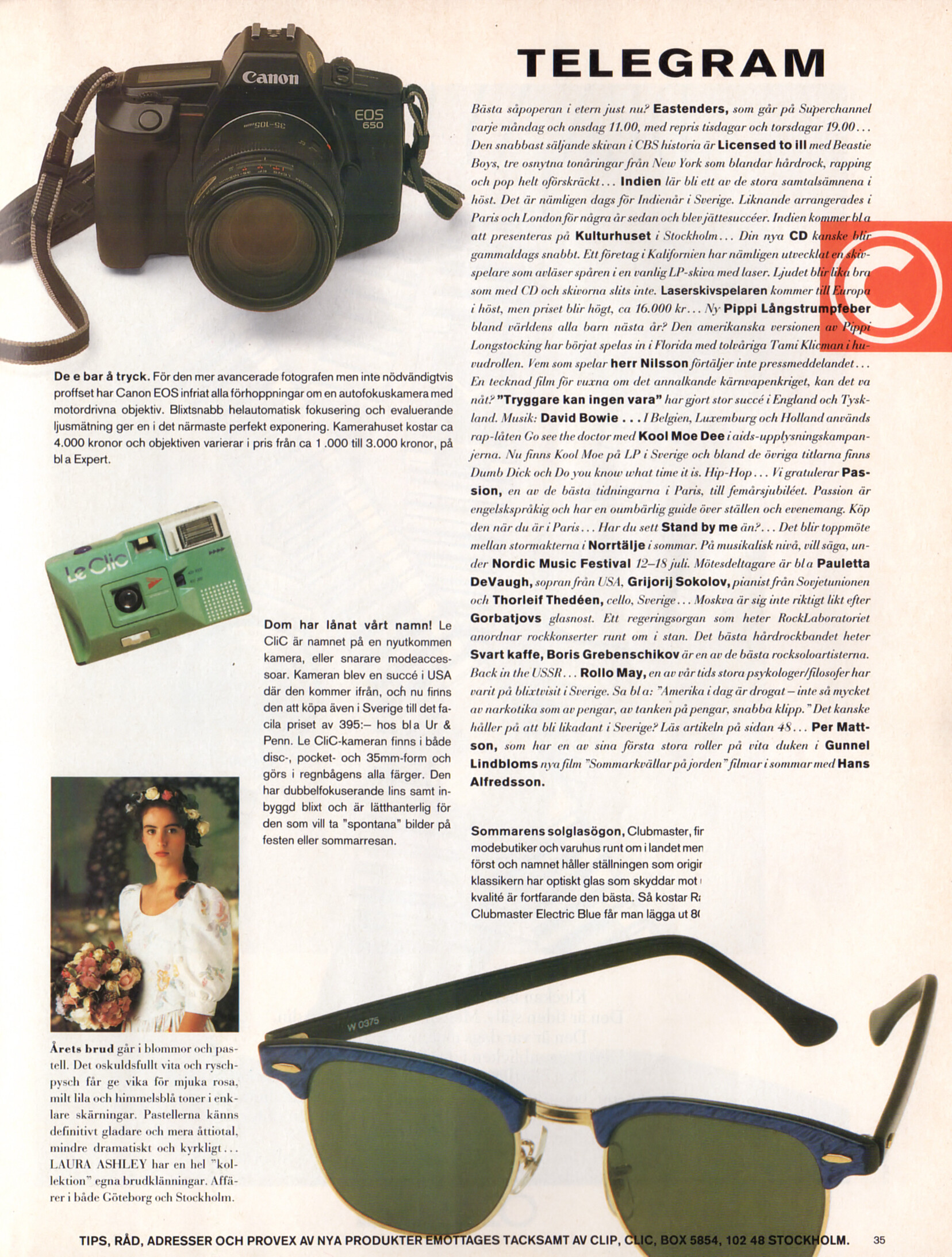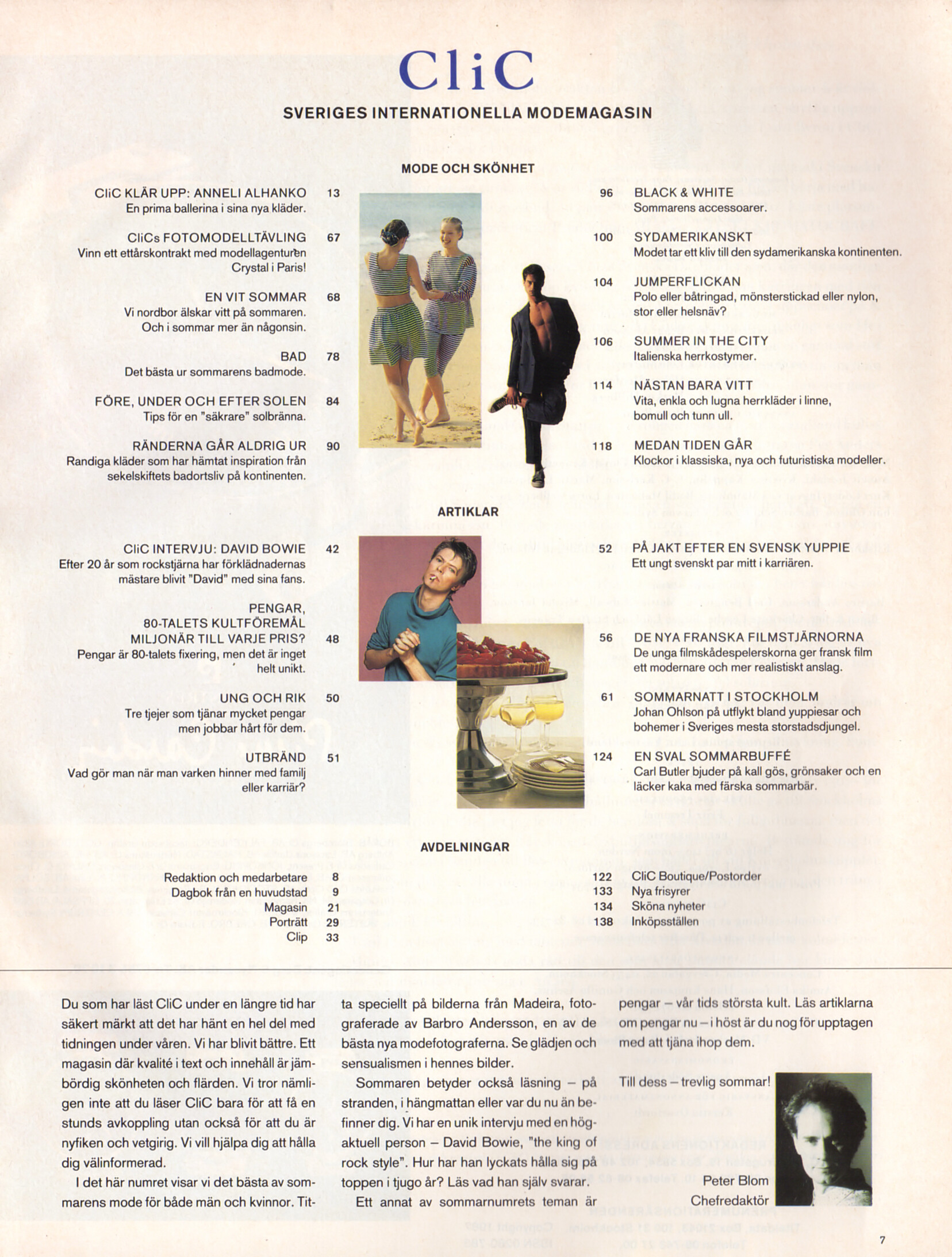 contents + "CliC boutique" - CliC Sweden 1987 #3 by Barbro Andersson - also showing Sarah Jones, David Bowie