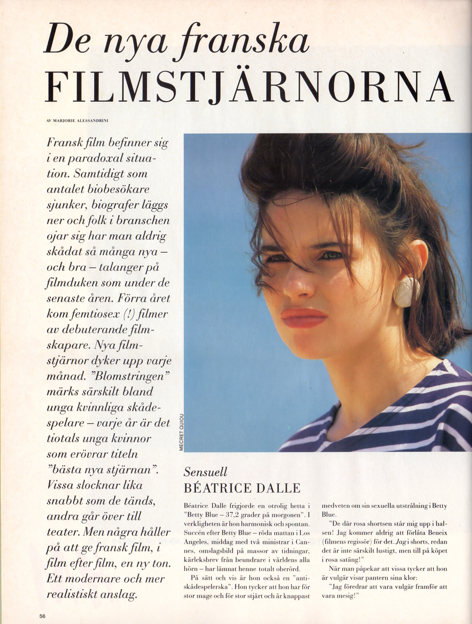 "De nya franska FILMSTJÄRNORNA" - CliC Sweden 1987 #3 - also showing Beatrice Dalle, Isabelle Adjani, Juliette Binoche, Carole Bouquet, Sophie Marceau, Sandrine Bonnaire