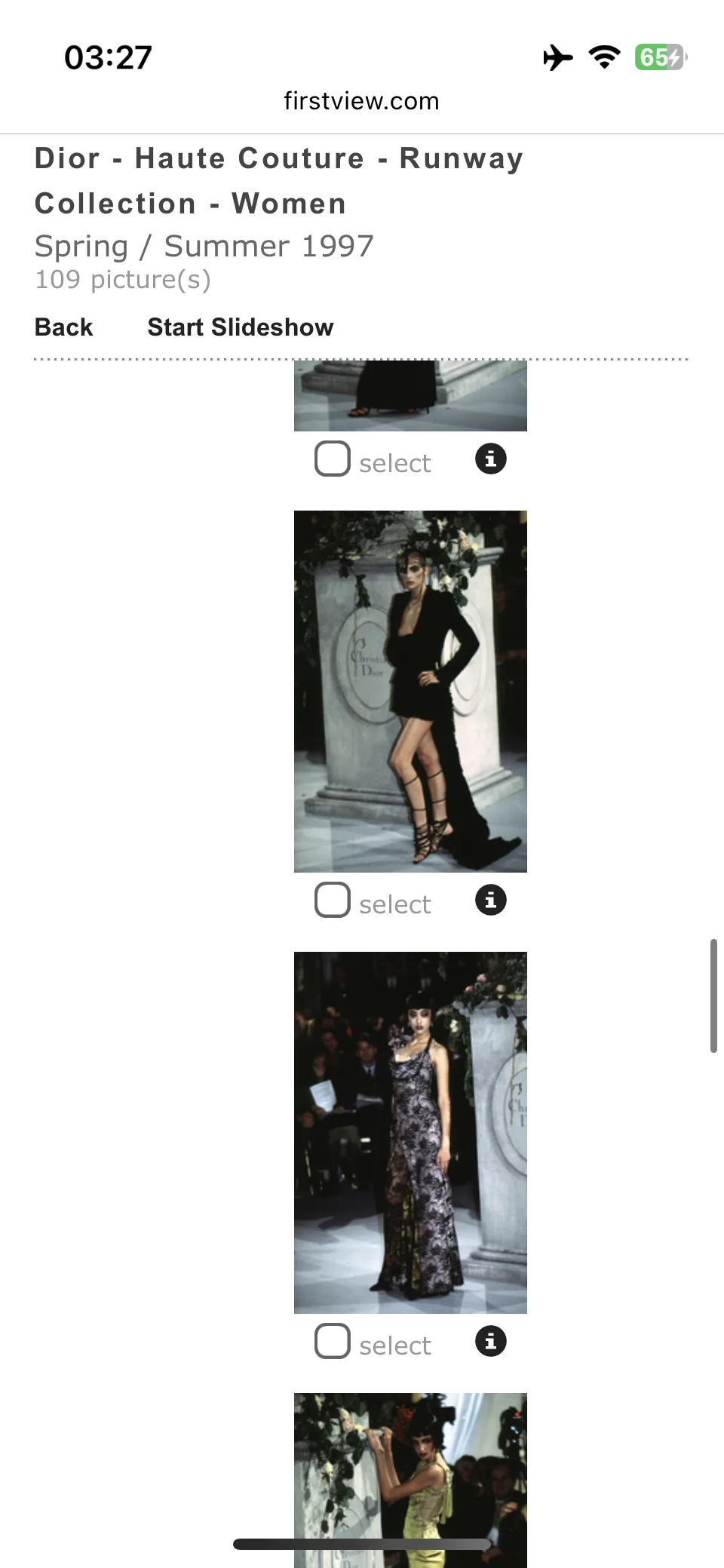 The pictures of Givenchy ss 1997 haute couture are of Vala Holmes, not Carrie Salmon As are the Ozbek, de Castlebajac, Westwood, Chanel, Johnson, Balenciaga, Valentino and Hermes shows. For the Ozbek fw 1997. You can see my eyes are hazel-green, not brown like hers.