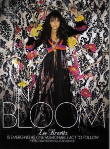 Are you gonna go her way? Her rocker dad and style-icon mom make her rock royalty, but actress Zoe Kravitz is ready to carve her own tracks text_Alexandra Phanor photography_Heidi Hartwig "My parents did a great job at keeping me down-to-earth and that's what I cherish about my childhood." "You have people who only want to be your friend because of that, or you have those who say,'Oh, Zoe thinks she is so cool cause her dad is...'" It may be a while until the official kick-off to summer, but you would have never guessed it on this sweltering 90 degree May afternoon in Soho, New York. Needless to say, the mugginess enveloping the city is not the ideal climate to run errands in--unless, of course, you're sitting pretty in a chauffeured, air-conditioned town car cruising from one location to the next. That's the mode of transportation you'd expect for 18-year-old actress Zoe Kravitz, but as she rushes her way into Starbucks, it's obvious the daughter of rocker Lenny Kravitz and actress Lisa Bonet is getting around on foot, and like the slew of patrons inside, she too could use some refuge from the sun. The diminutive, arresting beauty is gripping the pedestrian summer cocktail, a large bottle of water, tightly under her arm. She's wearing comfortable red flats. "I try to wear heels casually, but I always end up switching to my flats," she says. Zoe is sporting her long, dark mane of extensions in a low, disheveled ponytail with a vintage wife beater worn as a short dress. The look is every bit the understated cool, downtown approach to fashion one expects from a young New Yorker with equally stylish, bohemian parents. "I'm running around like a crazy person today," she lets out dropping herself into a heavy wooden chair while removing her sunglasses. Indeed, it's been a crazy couple of weeks for Zoe and catching up with her for this interview proved almost impossible. "I'm so sorry about all the changes in scheduling this, I had to wrap up some last minute school stuff so I don't fail," she explains. It's her last week of high school and Zoe just came from dropping off her very last paper. She has a senior school trip to Santa Fe in two days and graduation in two weeks to look forward to before embarking on a new chapter in her life. "You have no idea how excited I am about graduation," she shrieks through a kool-aid smile that only gets brighter and more infectious as the interview progresses. "Twelve years is a long time, and I am so happy, ready and open to experience what's next" Impending is fulfilling a life-long dream of working as an actress. Zoe has an array of small roles in upcoming feature films starting with No Reservations alongside Catherine Zeta-Jones."I play a scary Goth girl named Charlotte who babysits for Catherine. It was fun to be made up into somebody else," she says. In The Brave One Zoe plays Chloe, a young prostitute who befriends a woman named Erica, played by Jodie Foster. "I got to work with Jodie Foster, which was amazing. I've been obsessed with her--not in a creepy way--since I was little. Everytime we did a take [on set] I would check if it was okay. [Jodie] would tell me to let go and just do it. She taught me to be comfortable on set." Zoe is currently shooting Laws of Motion , an indie take on a dysfunctional family, alongside Mathew Perry and Ben Foster. "It's not about the size of the roles, it's about finding things that challenge and intrigue you. If these small roles will allow me to do that then I'm grateful," she says. While acclimating herself to a movie set took some time, turning it on for the camera was elementary. Zoe has always wanted to be in front of the camera entertaining an audience, she says. Along with her cousin, she would perform music videos, skits, scenes from the Wizard of Oz and Grease for her family and friends. "We would make tickets and people had to pay to watch us," she recalls fondly. "We were serious. No ticket, no show." Zoe's passion for acting is undoubtedly in her blood. Her mother, Lisa Bonet, the coolest girl on television in the 80s and 90s, starred as Denise Huxtable on The Cosby Show , A Different World and a handful of movies, while her late grandmother Roxie Roker, Lenny Kravitz's mother, was half of one of television's first interracial couples on The Jeffersons . "Growing up around actors as a kid you want to imitate what the adults are doing, she says. "But as I got older it was clear to me that I loved it and could do it for a living." It's at the Waldorf School, where academics and arts are equally intertwined and classes are more exchanges of ideas than lectures, that Zoe would begin to develop as an actress, taking part in a myriad of school productions. "I liked that everyone shared a passion for being creative. My goals to be an actress did not make me stand out and I liked that," she points out. Neither did her pedigree. That's partly due to the way Zoe was raised. Her parents brought her up relatively normal despite the occasional fashion shows and world tours with her father. Zoe's group of close friends doesn't include other celebrity offsprings, and her closet isn't full of designer pieces either. "I don't like spending thousands on a T-shirt and I'm not really good with designer names," she says. Zoe can often be seen roaming the streets of New York shopping at flea markets or riding on the subway with her boyfriend. She's more concerned with her schoolwork and only worked on films during the summer break. She has a soft spot for the 70's and loves Jimi Hendrix, Janis Joplin, Led Zepplin, and she daydreams about being at Woodstock. All told, Zoe's life, so far, would be too tame for splashy magazines headlines. For the first 11 years of her life, Zoe grew up light years away from Hollywood in the mountains of Topanga, California, with her mother. She subsequently moved to Miami and then New York--"I love the culture and movement here"--with her father. "My parents did a great job at keeping me dow