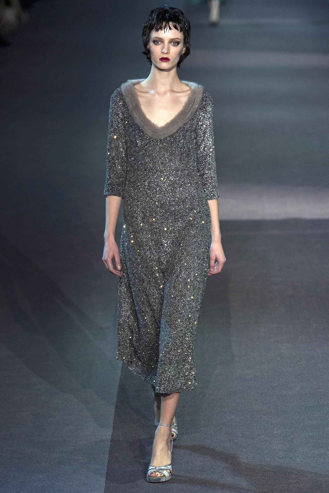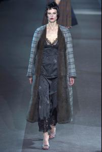 March 6, 2013 PARIS By Nicole Phelps The scene Marc Jacobs set at his evocative show for Louis Vuitton this morning was that of a grand hotel. Out of fifty numbered rooms lining the runway, models emerged in varying states of dress and undress. One wore a flower-embroidered double-breasted jacket and matching briefs with her platform sandals and fifties wig, an echo of a silhouette Jacobs showed in New York nearly three weeks ago. The pajamas of that collection reemerged here as well. More often, though, he conveyed a sense of intimacies exposed—the walk of shame, some called it, which fits with what he was saying backstage about our exhibitionistic and voyeuristic tendencies. There were lace-edged negligees under sweeping astrakhan coats, printed silk brassiere-and-slip sets, and peignoirs lined with plush fur. Daywear, too, evoked the boudoir: Skirtsuits were stitched with degradé embroideries, deep feather hems decorated oversize men's coats. Jacobs has taken us to hotels before—the quartet of old-fashioned cage elevators from his Fall ’11 Claridge's collection lingers in the memory. But where that show had an erotic undercurrent of sex, the takeaway today was more romantic. Back then, Kate Moss wore hot pants; here she was in a long-sleeve tulle dress embroidered with flowers. This was a romance with intimations of decadence and melancholy, though: Only the very indulged or the very depressed stay in their jammies all day. For his bow, Jacobs wore the pj's from Vuitton's recent men's collection, which feature Jake and Dinos Chapman's print interpretation of Diana Vreeland's Garden in Hell apartment. That's a choice ripe for interpretation. You couldn't blame him for wanting a nap, given his myriad responsibilities. On the other hand, with his fiftieth birthday coming up next month, perhaps he's simply achieved a greater sense of relaxation. Afterward, the designer shrugged off any special meaning. "I haven't worn anything else for months," he said. The clothes on the runway were lovely, with their muted, sleepy colors and the deluxe details that Vuitton does so well. Luxury was the word for the bags, too, which were Vuitton classics like the Speedy, the Lockit, and the Pochette Accessoires in materials that included marabou feathers and waxed crocodile. If the collection felt less provocative than usual, in spite of the suggestion of illicit goings-on behind closed hotel-room doors, that's emblematic of a season in which designers have turned en masse to the look of midcentury clothes. That could have been prompted by last season's Miu Miu collection, but Jacobs has never hidden his affection for the work of Miuccia Prada. If the Vuitton designer is comfortably part of the pack this season, the clothes were none the worse for that.