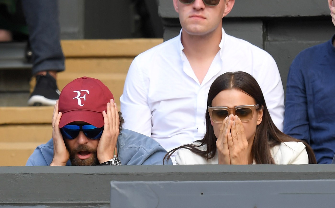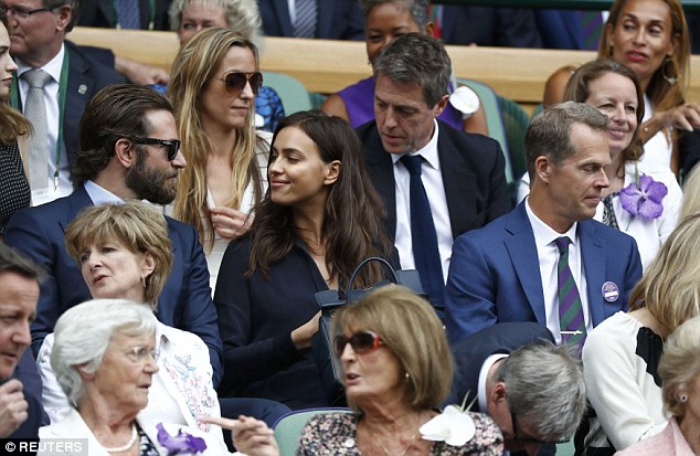 Bradley Cooper and Irina Shayk look on prior to the Men's Singles Final match between Andy Murray of Great Britain and Milos Raonic of Canada on day thirteen of the Wimbledon Lawn Tennis Championships at the All England Lawn Tennis and Croquet Club on July 10, 2016 in London, England. zimbio- Irina Shayk