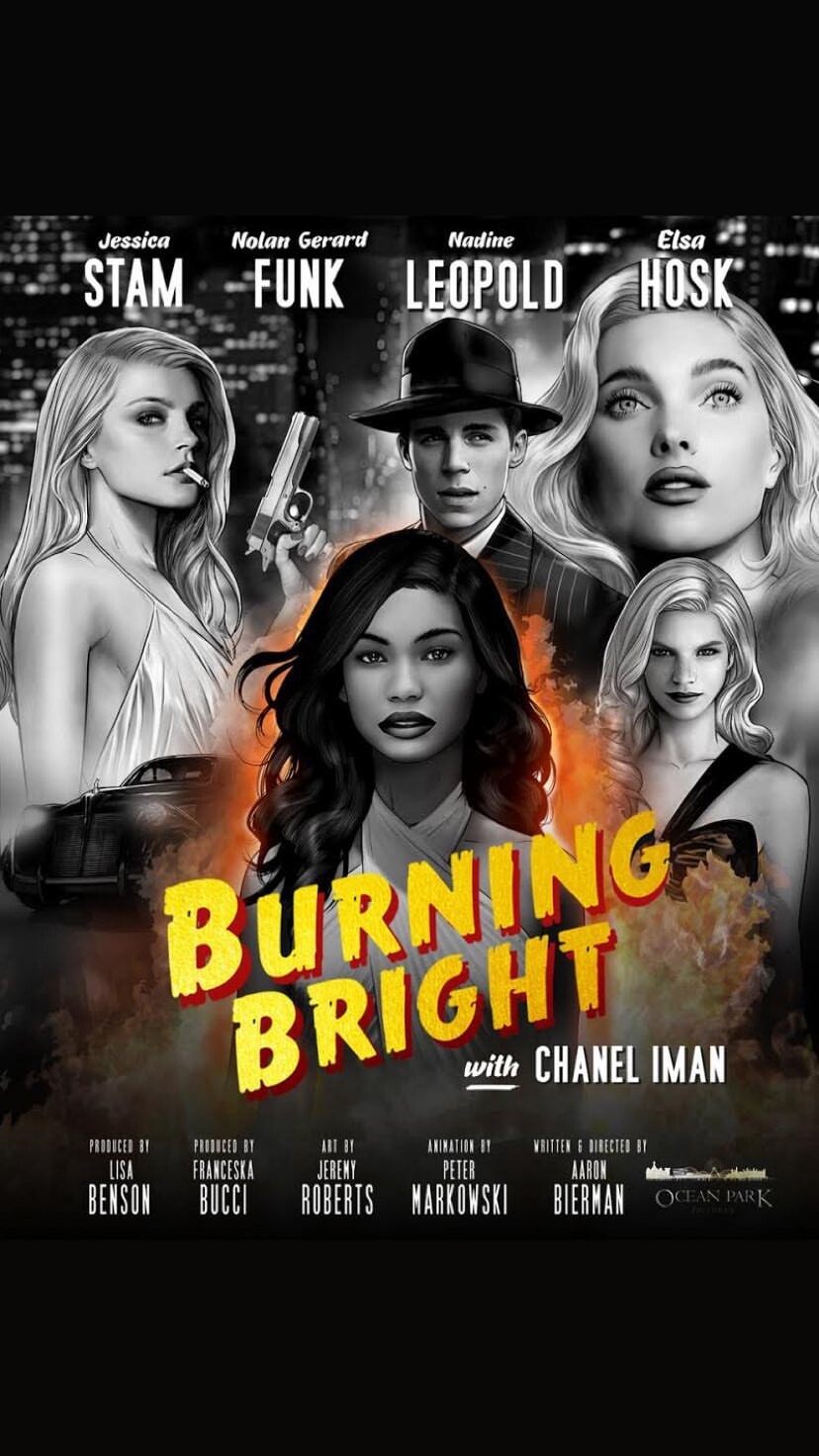BURNING BRIGHT is a stylized, animated short film produced in partnership between IMG Models and filmmaker Aaron Bierman. Inspired by 1940’s film noir classics such as The Maltese Falcon and Sunset Boulevard, the project features the talents and likenesses of supermodels Chanel Iman, Elsa Hosk, Jessica Stam, Nadine Leopold and actor Nolan Funk. When a mysterious briefcase is stolen by her boyfriend, a young woman (Chanel Iman) fights to reclaim it before his team of ruthless female assassins kills her.- Elsa Hosk