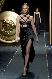 15. Candice Swanepoel walks the runway of the Versace Fall-Winter 18/19 during the MFW. Via, divinecandice. Candice's outfit was a tribute of a dress Donatella wore years ago.
