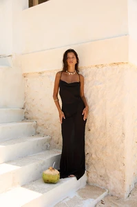 June 13, 2025Jun 13 Author DepumaIn between takes with @selinaasici at our recent shoot in Milos wearing the Emmaline Gown • Crafted from soft cotton.mp4