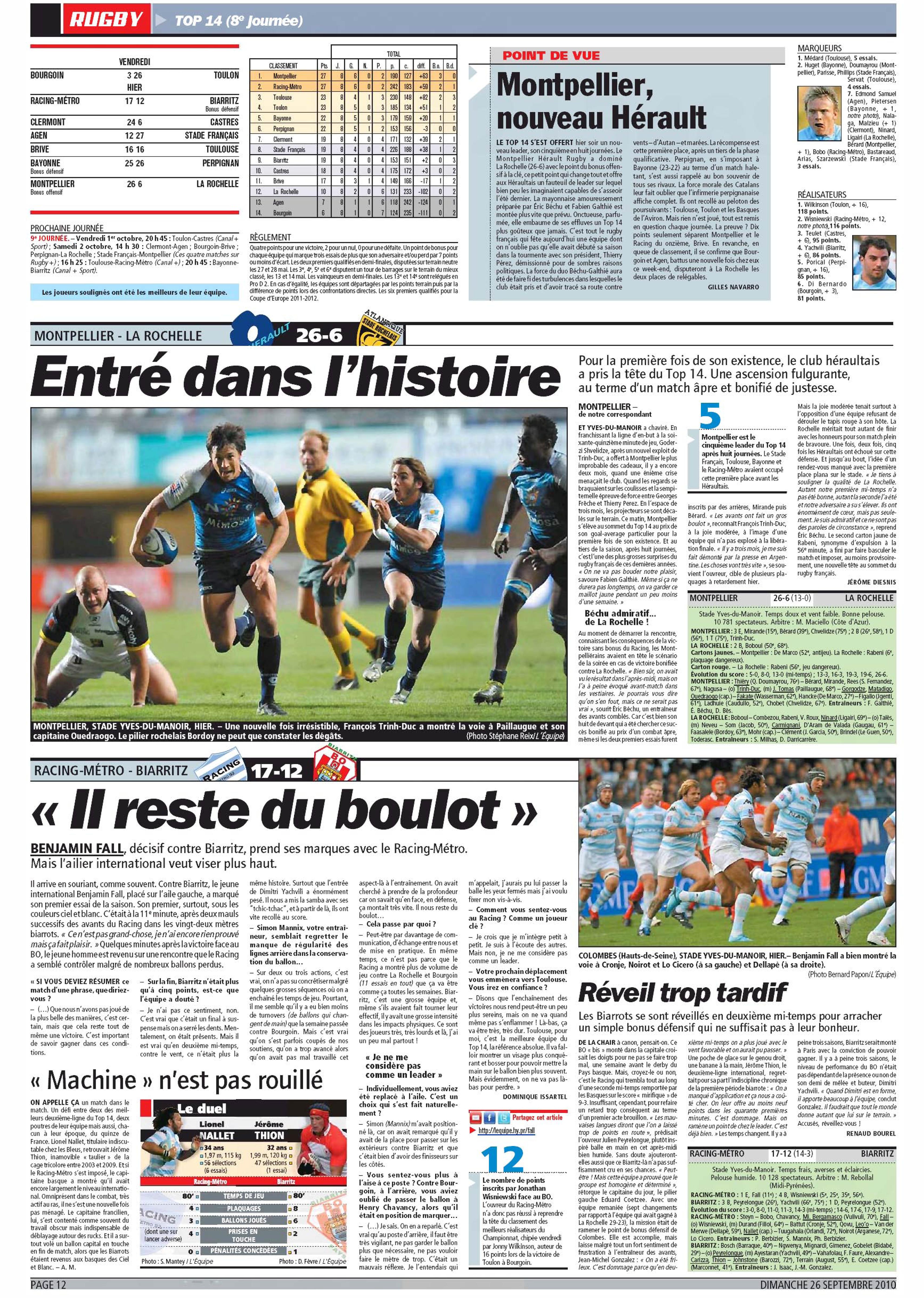 September 25, 201015 yr Author Aviva Premiership Saracens 24 - 17 Northampton Top 14 Montpellier 26 - 6 La Rochelle /monthly_09_2010/post-6862-0-1446061683-32744_thumb.jpg" data-fileid="3222290" alt="post-6862-0-1446061683-32744_thumb.jpg" data-ratio="74.92"> /monthly_09_2010/post-6862-0-1446061683-39493_thumb.jpg" data-fileid="3222298" alt="post-6862-0-1446061683-39493_thumb.jpg" data-ratio="152.12"> /monthly_09_2010/post-6862-0-1446061683-41574_thumb.jpg" data-fileid="3222300" alt="post-6862-0-1446061683-41574_thumb.jpg" data-ratio="72.79">