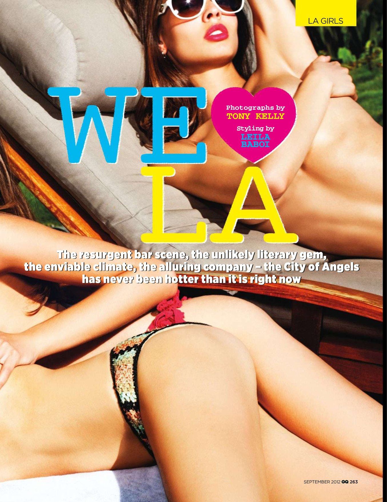 August 7, 201213 yr Editorial "We Love L.A." in GQ UK September 2012. Photographer: Tony Kelly Stylist: Leila Baboi Hair: Stephanie Hobgood (Exclusive Artists/Sachajuan) Make-up: Samuel Paul (Jed Root/NARS) Models: Heide Lindgren Amanda Booth (American. Age: 25 or 26. Agency: LA Models), Stephanie Corneliussen (Danish. Born on April 28th, 1987. Agency: LA Models) Xenia Deli (From Moldova (small country sandwiched between Ukraine and Romania). Born on October 27th, 1989. Agency: Elite Models) Sarah Dumont (American in her early 20s. Agency: Elite Models) Lauren Young (American. Born on October 26th, 1989. Agency: Elite Models) Source: pdf-giant, via flashbang at the Fashion Spot.