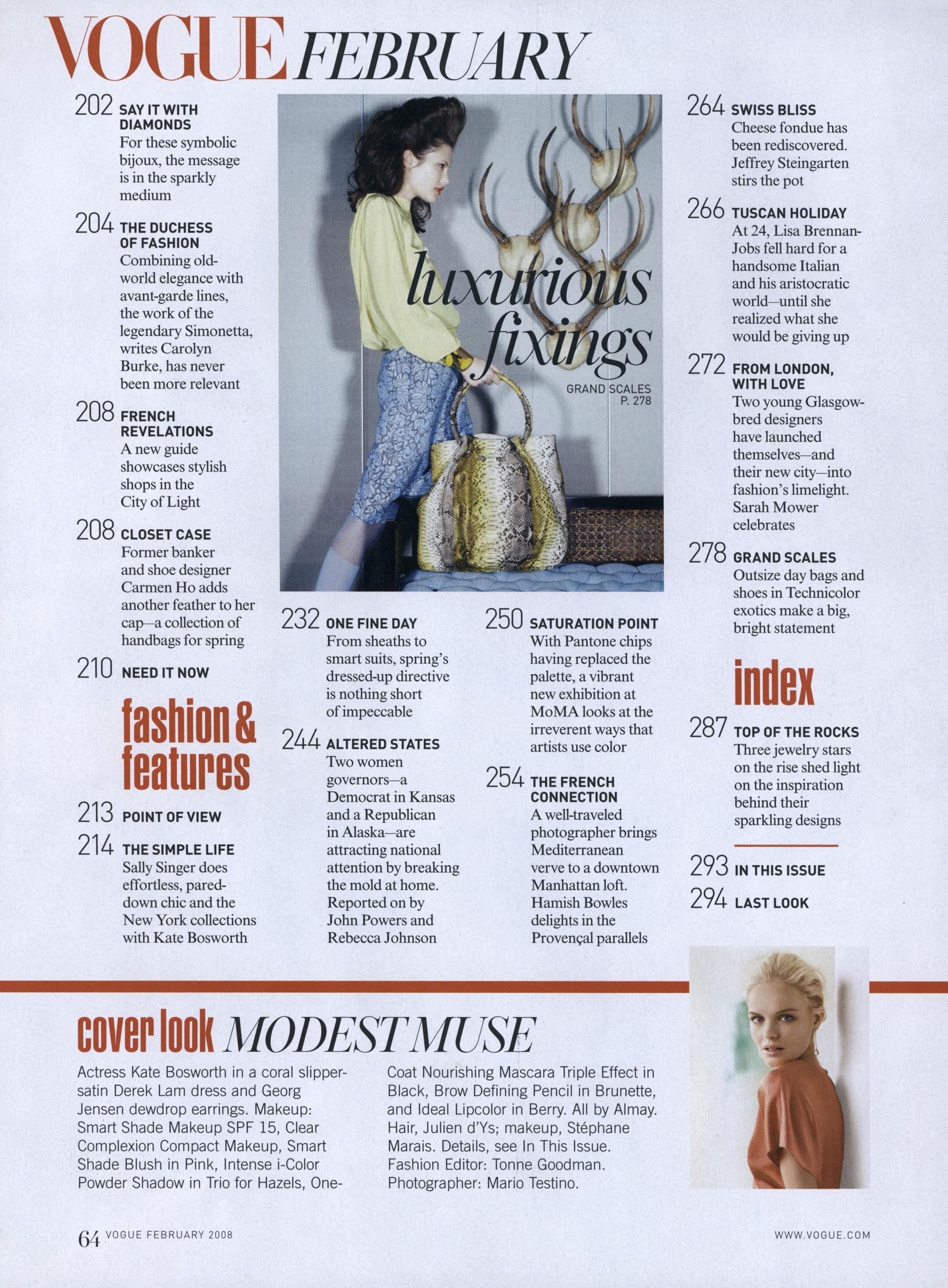 August 26, 20214 yr US Vogue February 2008 "The Simple Life" Models/Subjects: Kate Bosworth, Thakoon Panichgul, Jim Sturgess, Phillip Lim, Jack McCollough, Lazaro Hernandez, Doo-Ri Chung, Derek Lam, Laura Mulleavy, Kate Mulleavy, Marcus Wainwright & David Neville Photographer: Mario Testino Fashion Editor: Tonne Goodman Hair: Julien d'Ys Makeup: Stéphane Marais Set Designer: Gideon Ponte Production on Location: Larry McCrudden & Jessica Brown Vogue Archive