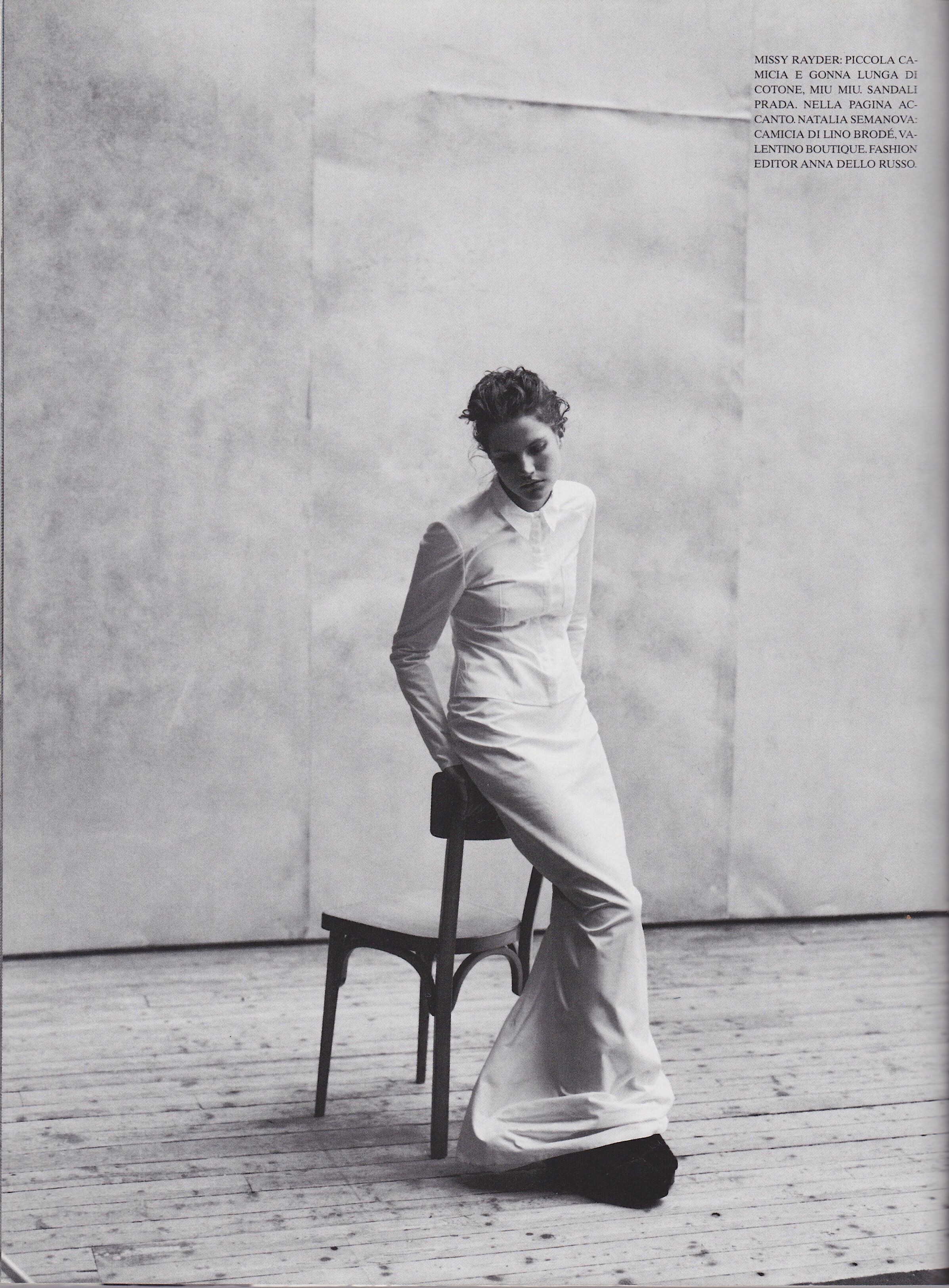 May 1, 20205 yr Magazine: Vogue Italia (August 1997) Title: The Now Beauty Photographer: Peter Lindbergh Fashion Editor: Aleksandra Woroniecka Model: Mini Anden, Missy Rayder Vogue Italia Archivio WARNING: NUDITY! Spoiler