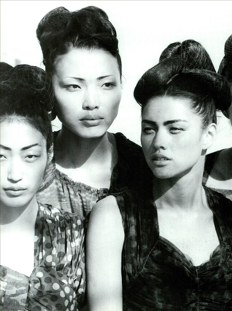 May 1, 20205 yr Magazine: Vogue Italia (December 2003) Title: Oriental Lure Photographer: Peter Lindbergh Fashion Editor: Sara Maino Hair: Mike Lundgren Makeup: Gucci Westman Production: Anthony Rudi Graneri Lighting Director: Kyler Kibbe Model: Ling Tan, Sylvia Kwon, Tracey Wang, Sue Tsa, Li Xin, Jamie Gong, Sophie Nicolas Vogue Italia Archivio