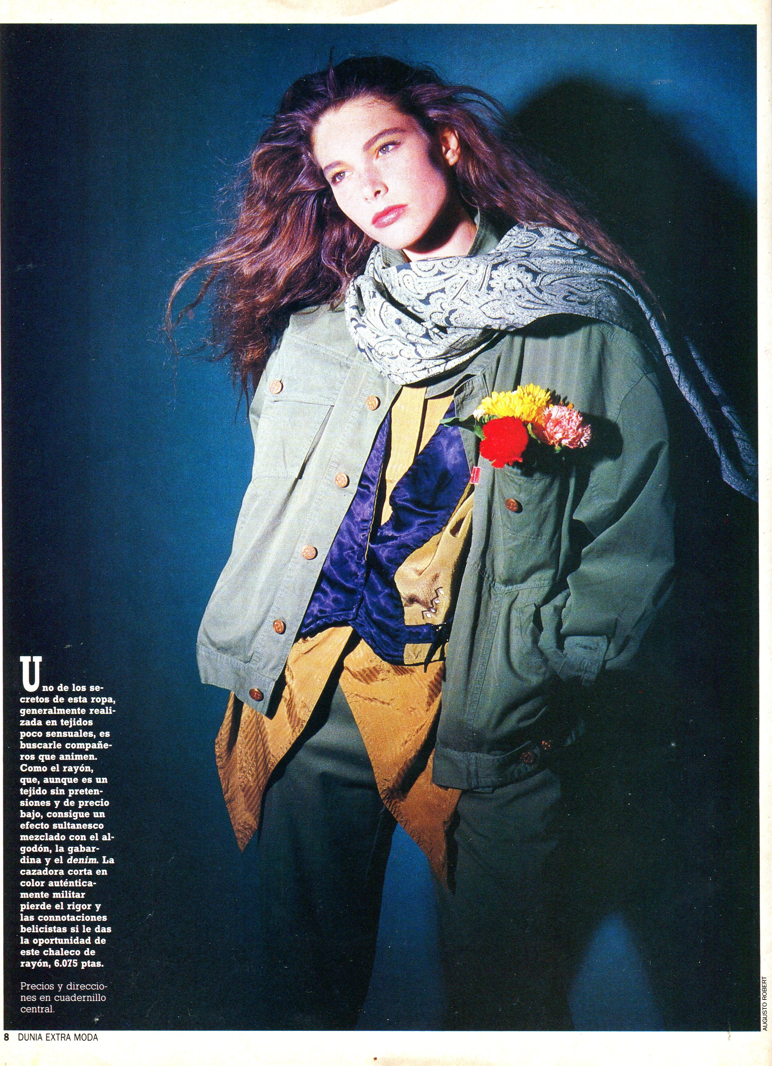 December 11, 20196 yr Cristina Piaget (her first steps like a model,she started in 1985) Spanish Extra Moda DUNIA magazine.Summer 1986 "KAKI POR LO CIVIL" editorial by Augusto Robert Source: My Scan