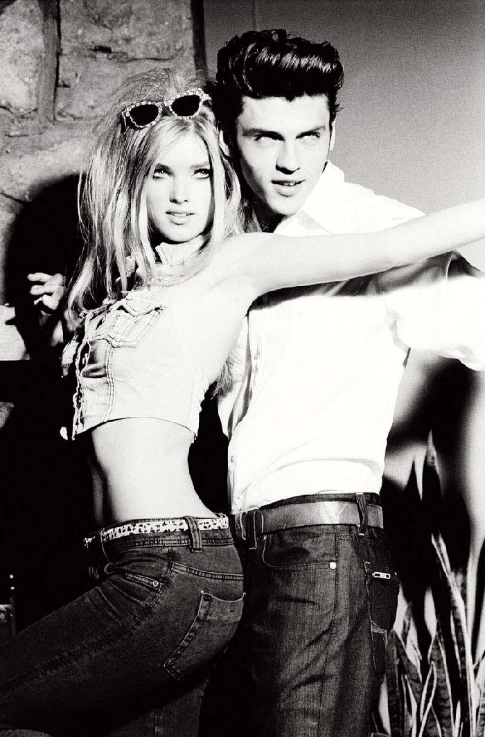 Heard, who stars as a Playboy Bunny in NBC’s upcoming ’60s-era series The Playboy Club, channels the decade again for her Guess ads, posing à la Marilyn Monroe in cuffed, skinny jeans; cropped denim jackets; knit bustiers; and retro-inspired dresses. Her paramour, model Silviu Tolu, wears studly styles such as denim jackets, leather bombers, Western-inspired wovens, and worn-in jeans.