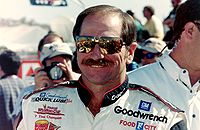 June 25, 201015 yr Ralph Dale Earnhardt Sr. (April 29, 1951 – February 18, 2001) was an American race car driver, best known for his career driving stock cars in NASCAR's top division. Earnhardt is notable for his success in the Winston Cup Series (now the Sprint Cup Series), winning seventy-six races (including one Daytona 500 victory in 1998). Earnhardt's seven championships are tied for most all-time with Richard Petty. His aggressive driving style led to controversy and earned him the nickname "The Intimidator". Earnhardt died in a last-lap crash during the 2001 Daytona 500. He is inducted in numerous halls of fame, including the inaugural class of the NASCAR Hall of Fame. Early life and personal life Earnhardt was born in Kannapolis, North Carolina, on April 29, 1951, to Martha Coleman and Ralph Earnhardt, who was then one of the best short-track drivers in North Carolina. Ralph won his one and only NASCAR Sportsman Championship in 1966 at Greenville Pickens Speedway in Greenville, South Carolina. Although Ralph did not want his son to follow in his footsteps, Earnhardt would not be persuaded to give up his dream of racing, dropping out of school to race. Ralph was a hard teacher for Earnhardt, and after Ralph died of a heart attack at his home in 1973, it took many years before Earnhardt felt as though he had finally "proven" himself to his father. When Earnhardt was 17, he married his first wife, Latane Brown, in 1968. Brown gave birth to Earnhardt's first son, Kerry Dale, in 1969. They were subsequently divorced in 1970. In 1971, Earnhardt married his second wife, Brenda Gee (the daughter of NASCAR car builder Robert Gee), who gave birth to a daughter, Kelley King, in 1972, and a son, Ralph Dale Jr., in 1974. Not long after his second son was born Dale and Brenda divorced. Dale then married his last wife, Teresa Houston in 1982, who gave birth to their daughter Taylor Nicole in 1988. NASCAR career Early Winston Cup career Earnhardt began his Winston Cup career in 1975, making his first start at the Charlotte Motor Speedway in North Carolina in the longest race on the Cup circuit, the World 600. Earnhardt drove an Ed Negre Dodge Charger(#8) and finished 22nd in the race, one place ahead of his future car owner, Richard Childress. Earnhardt competed in 8 more races until 1979, when he joined Rod Osterlund Racing, in a season that included a rookie class of future stars - Earnhardt, Harry Gant and Terry Labonte. In his rookie season, Earnhardt won one race at Bristol, captured four poles, had 11 Top 5 finishes, 17 Top 10 finishes, and finished 7th in the points standings, in spite of missing four races because of a broken collarbone, winning Rookie of the Year honors. In his sophomore season, Earnhardt, now with 20-year old Doug Richert as his crew chief, began the season winning the Busch Clash. With wins at Atlanta, Bristol, Nashville, Martinsville, and Charlotte, Earnhardt won his first Winston Cup championship. To this day, Earnhardt is the only driver in NASCAR Winston Cup history to follow a Rookie of the Year title with a NASCAR Winston Cup Championship the next season. The championship also made him the third driver in NASCAR history to win both the Rookie of the Year and Cup Series championship in his career, joining David Pearson and Richard Petty, and Earnhardt is now one of eight to have done so (Rusty Wallace, Alan Kulwicki, Jeff Gordon, Tony Stewart, and Matt Kenseth have since joined Earnhardt, Petty, and Pearson as members of that exclusive club.) In 1981, after Osterlund sold his team to J.D. Stacy, Earnhardt left for Richard Childress Racing, and finished the season 7th in the points standings but winless. The following year, at Childress' suggestion, Earnhardt joined car owner Bud Moore for the 1982 and 1983 seasons driving the #15 Wrangler Jeans Ford Thunderbird (Earnhardt's only full-time Ford ride in his career). During the 1982 season, Earnhardt struggled. Although he won at Darlington, he failed to finish 15 races, and completed the season 12th in points, the worst of his career. He also suffered a broken knee cap at Pocono Raceway when he flipped after contact with Tim Richmond. In 1983, Earnhardt rebounded and won his first of 12 Twin 125 Daytona 500 qualifying races. Earnhardt won at Nashville and at Talladega, finishing eighth in the points standings. Return to Richard Childress Racing After the 1983 season, Earnhardt returned to Richard Childress Racing, replacing Ricky Rudd in the #3. Rudd went to Bud Moore's #15, replacing Earnhardt. Wrangler sponsored both drivers at their respective teams. During the 1984 and 1985 seasons, Earnhardt visited victory lane six times, at Talladega, Atlanta, Richmond, Bristol (twice), and Martinsville, where he finished fourth and eighth in the season standings, respectively. The 1986 season saw Earnhardt win his second career Winston Cup Championship and the first owner's championship for RCR. He won five races and had ten Top 5 and sixteen Top 10 finishes. Earnhardt successfully defended his championship the following year, visiting victory lane eleven times and winning the championship by 489 points over Bill Elliott. In the process, Earnhardt set a NASCAR modern era record of four consecutive wins and won five of the first seven races. In the 1987 season, Earnhardt earned his nickname "The Intimidator" after spinning out Elliott in the final segment of "The Winston", a non-points event now known as the NASCAR Sprint All-Star Race. The 1988 season saw Earnhardt racing with a new sponsor, GM Goodwrench, which replaced Wrangler Jeans. During this season Earnhardt garnered a second nickname, "The Man in Black", owing to the black paint scheme in which the #3 car was painted. He was also called "Darth Vader" more than once because of the black uniform and car, adding to his notoriety as a driver who would wreck you if he couldn't pass you. He won three times in 1988, finishing third in the points standings behind Bill El