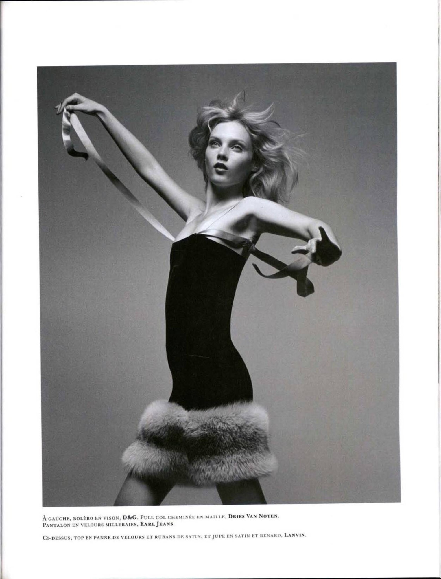 August 18, 20223 yr La main dans le sac Magazine: Numéro #61 (March 2005) Photographer: Luciana Val & Franco Musso Fashion Editor: Capucine Safyurtlu Hair: Alain Pichon Makeup: Max Delorme Manicure: Anatole Rainey Model: Ilona Kuodiene scanned by Kanna